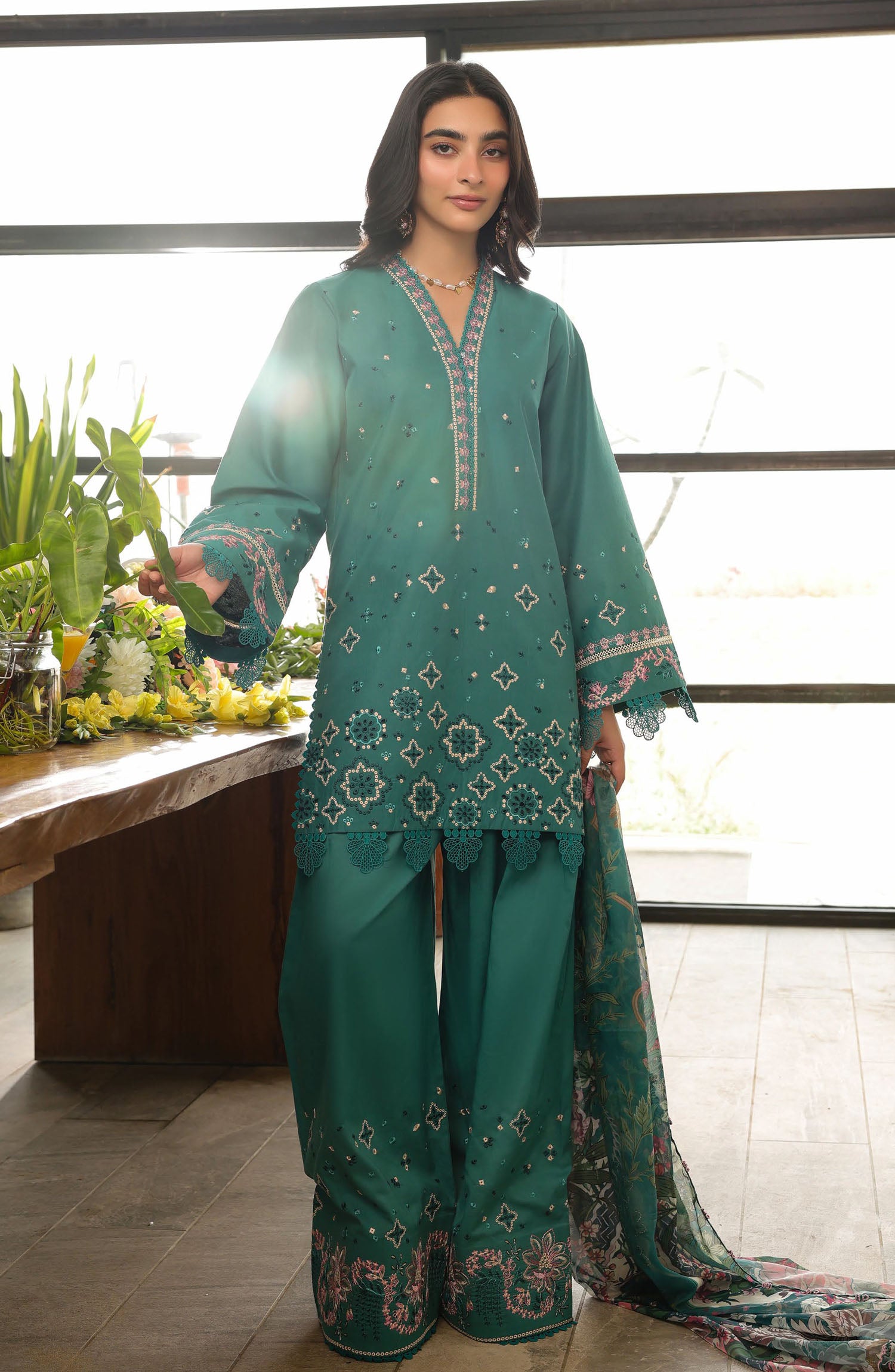Sahane Embroidered Lawn Unstitched 3 Piece Suit - CT-21004 Ameta - SAH25ILL - Sea Green - Summer Collection