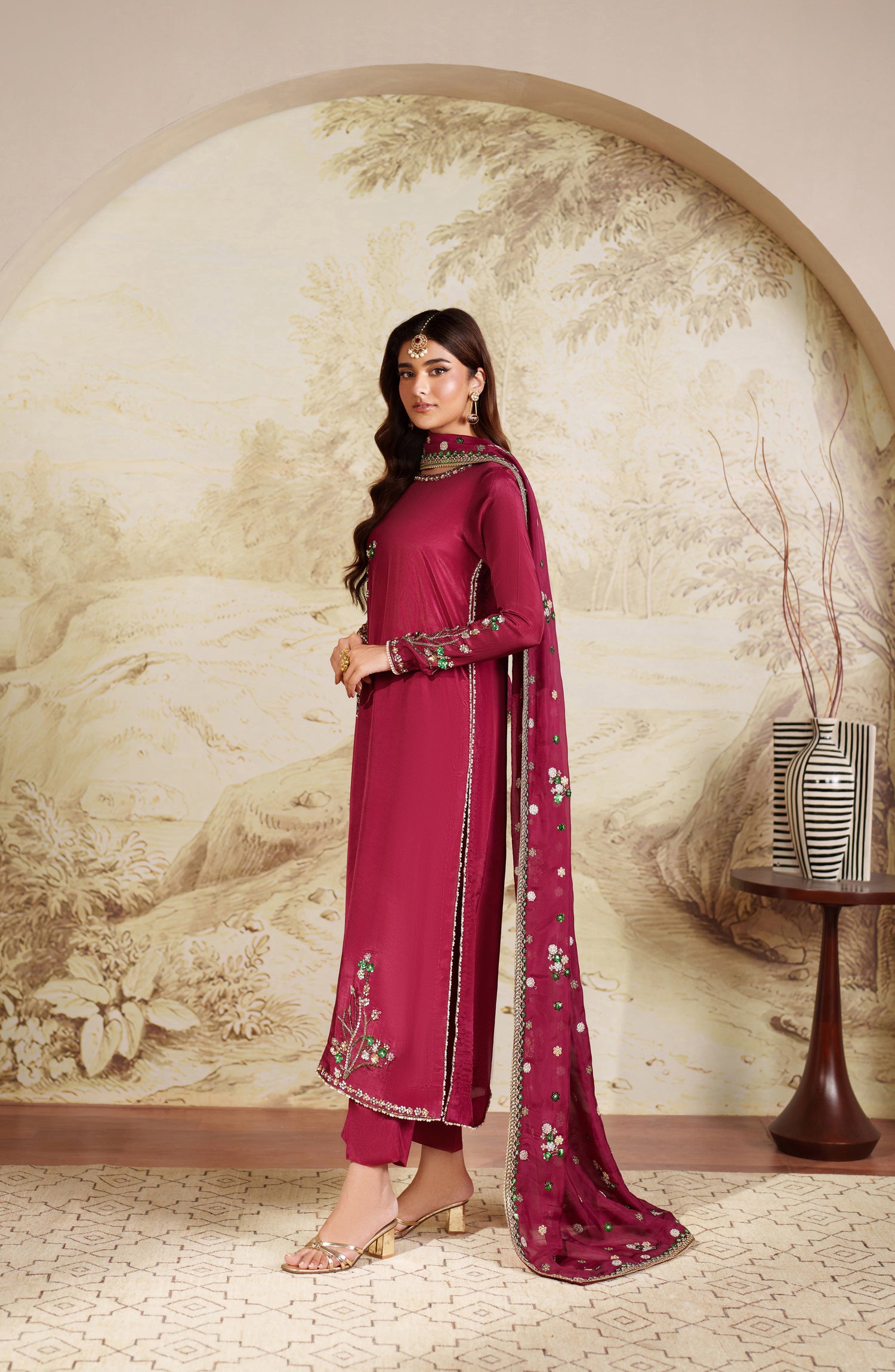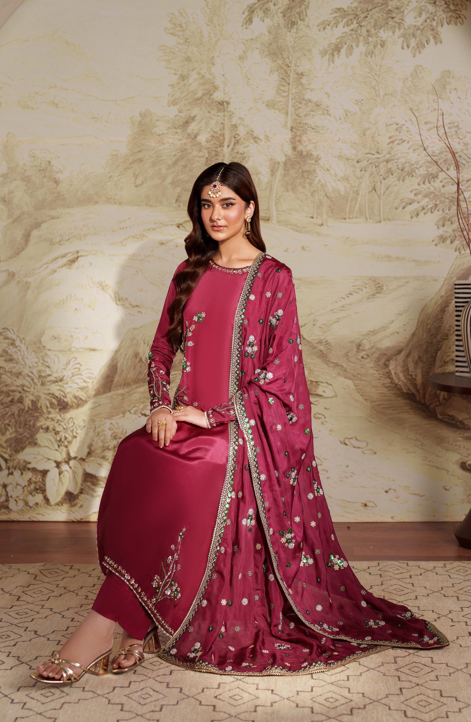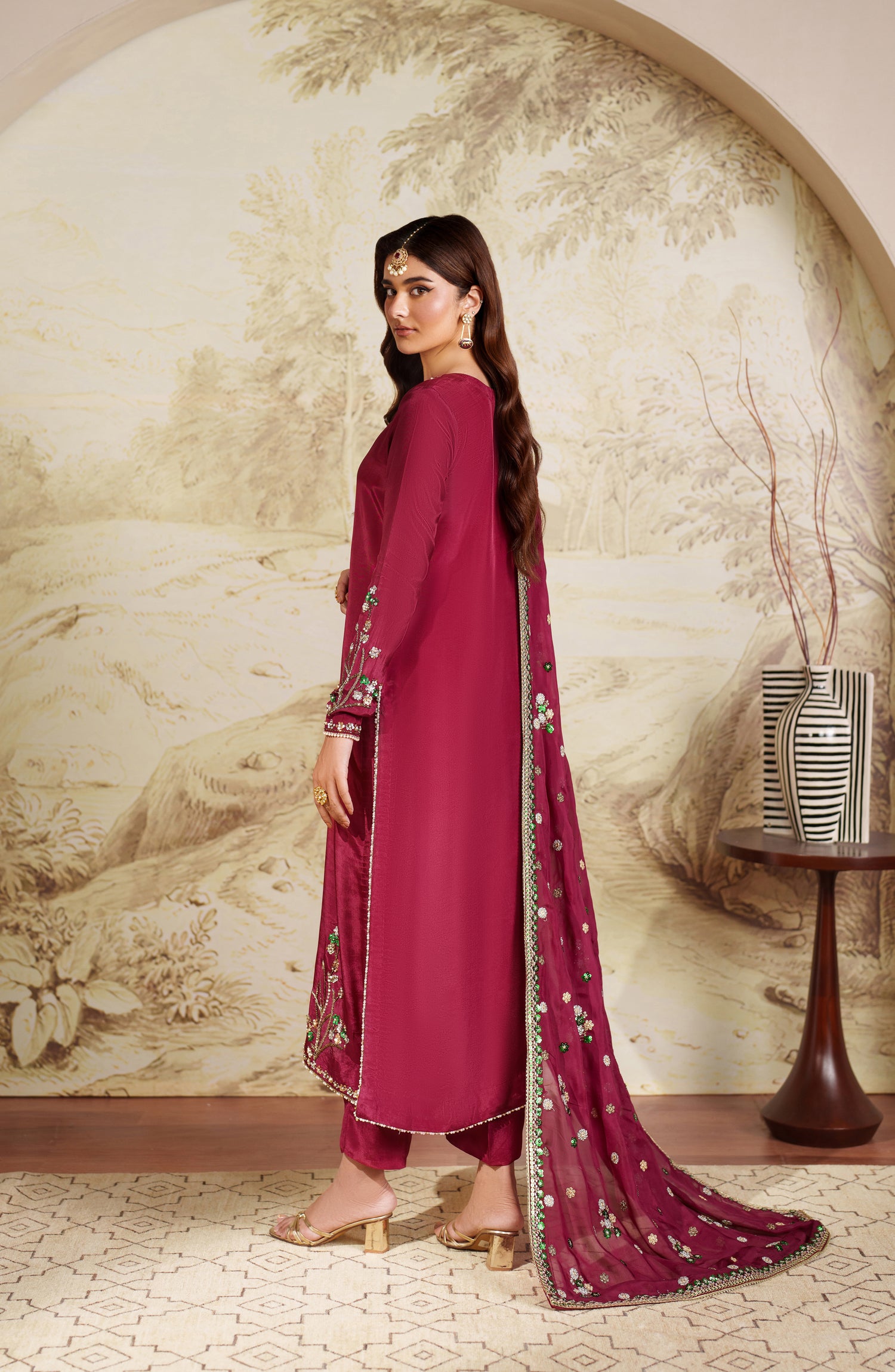 Luxury Embroidered Tussel Silk Unstitched 3 Piece Suit