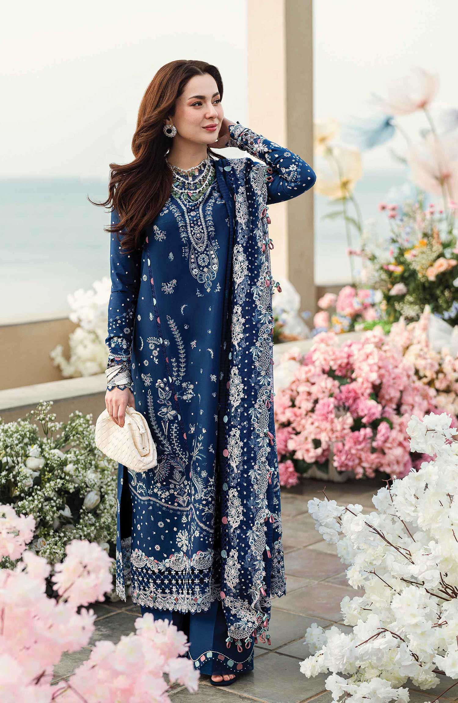Qalamkar Sahil Luxury Lawn Collection 2025 has been styled in the image for photography and illustrative purposes.