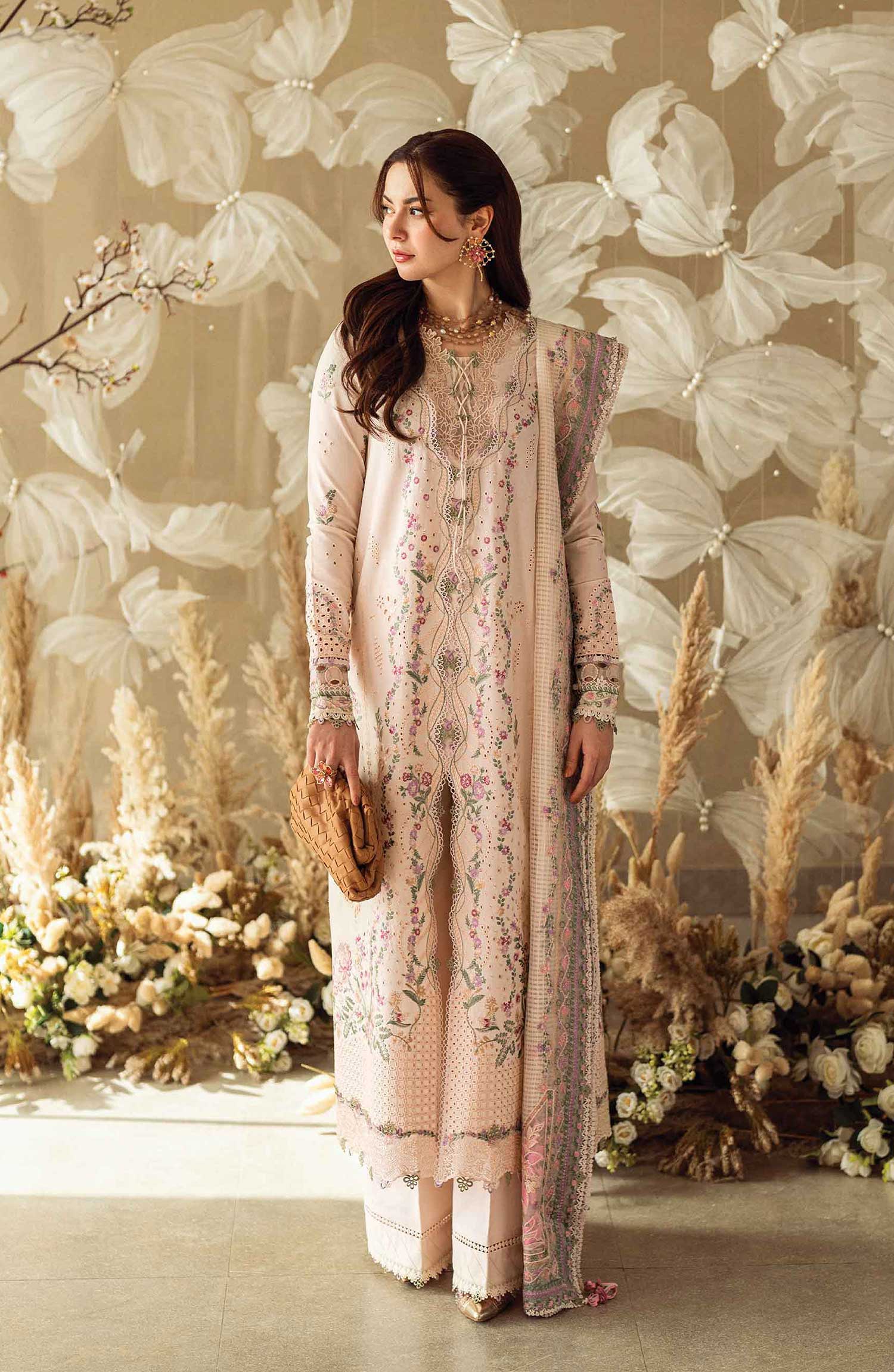 Qalamkar Sahil Luxury Lawn Collection 2025 has been styled in the image for photography and illustrative purposes.