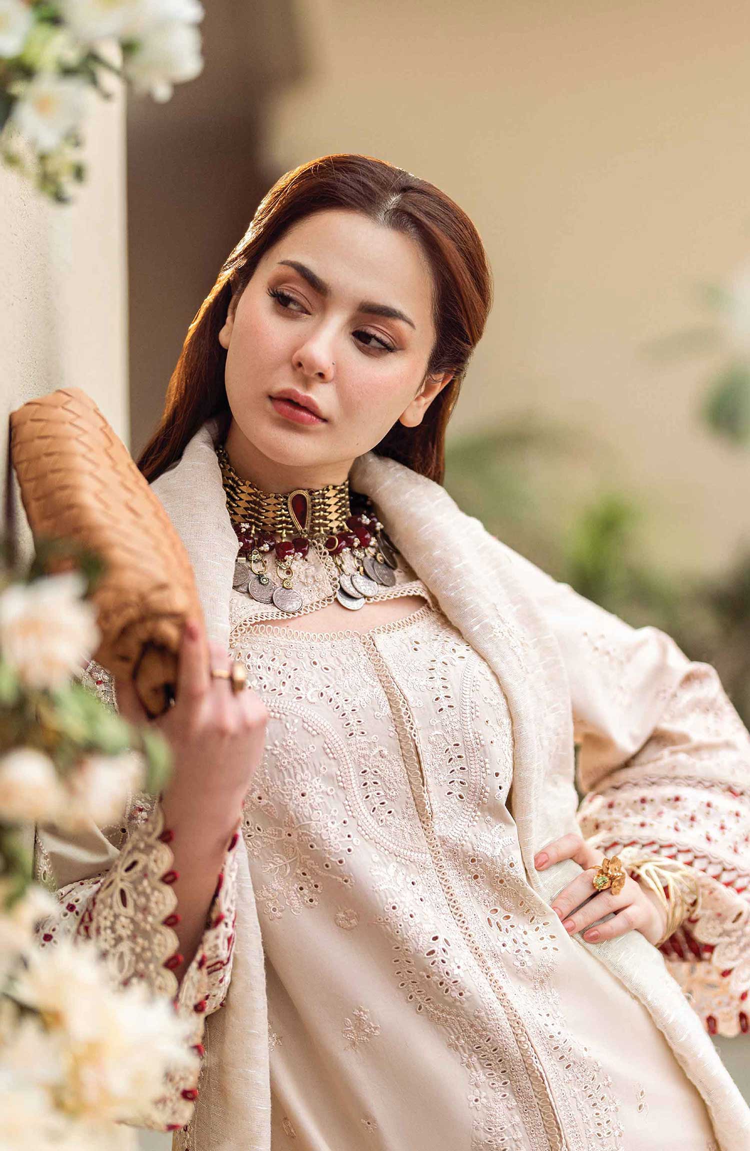 Qalamkar Sahil Luxury Lawn Collection 2025 has been styled in the image for photography and illustrative purposes.