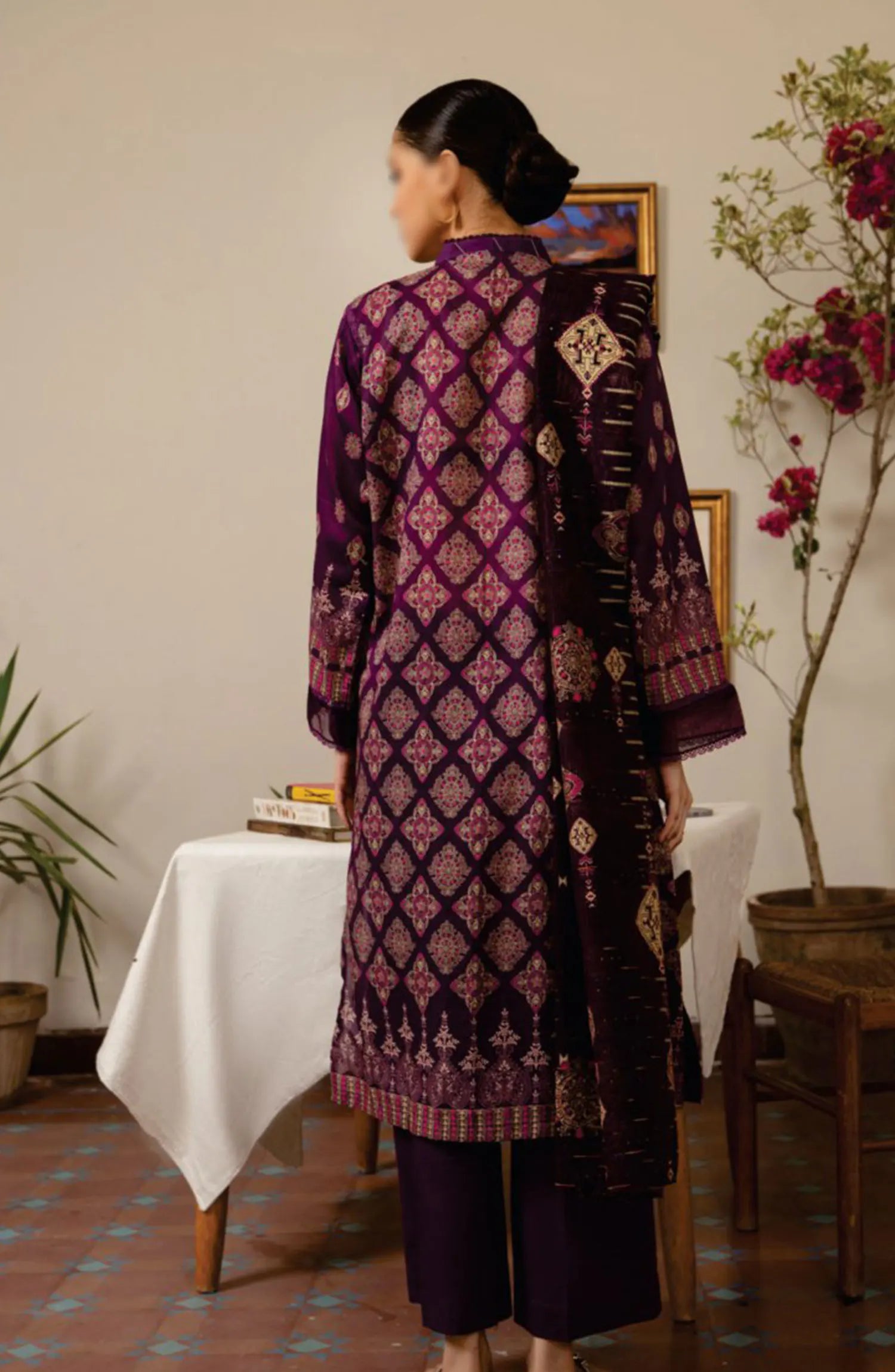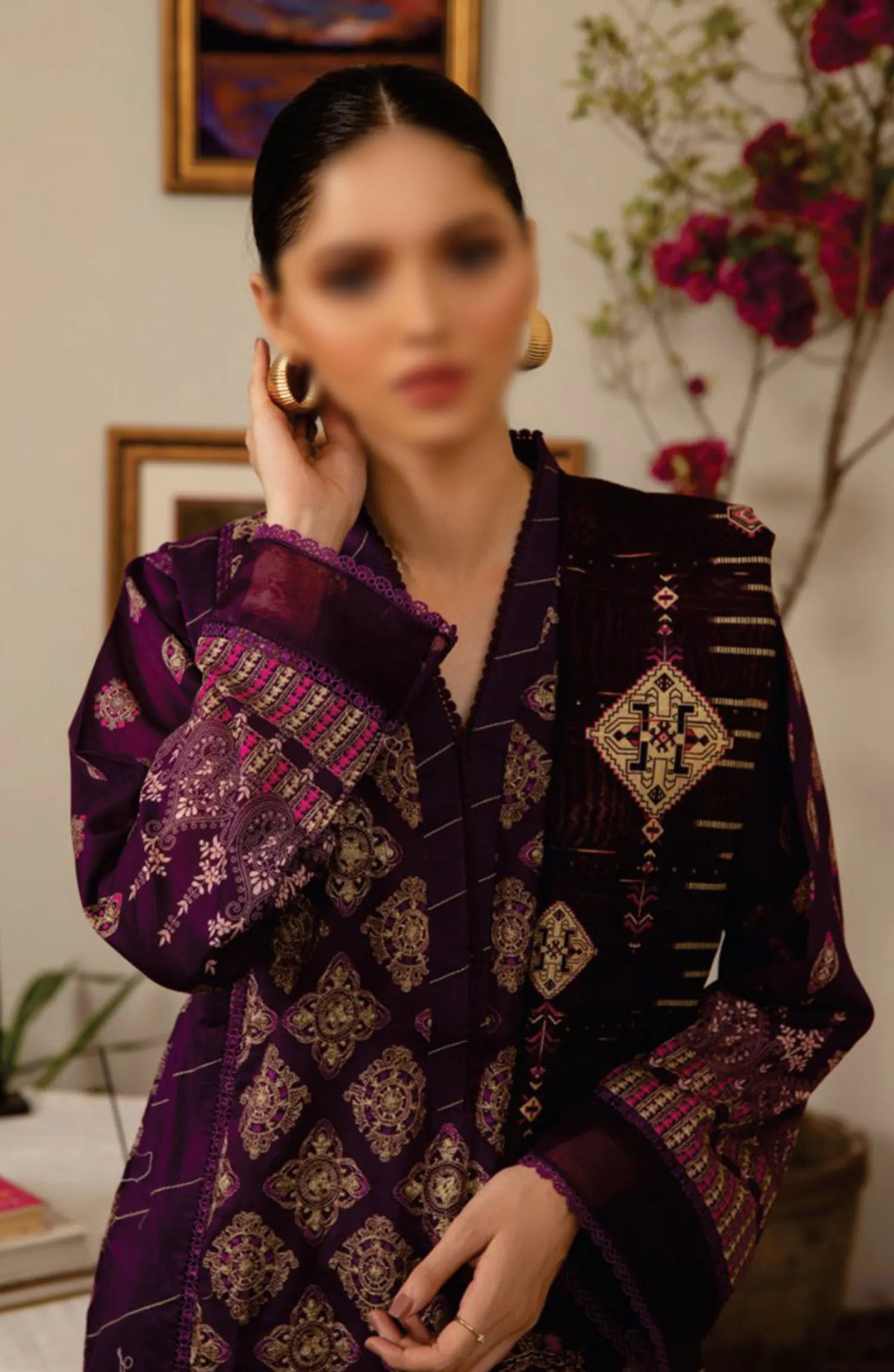 Shaista Supreme Embroidered Peach Unstitched 3 Piece Suit - D-90 - SHS25SP - Purple - Winter Collection