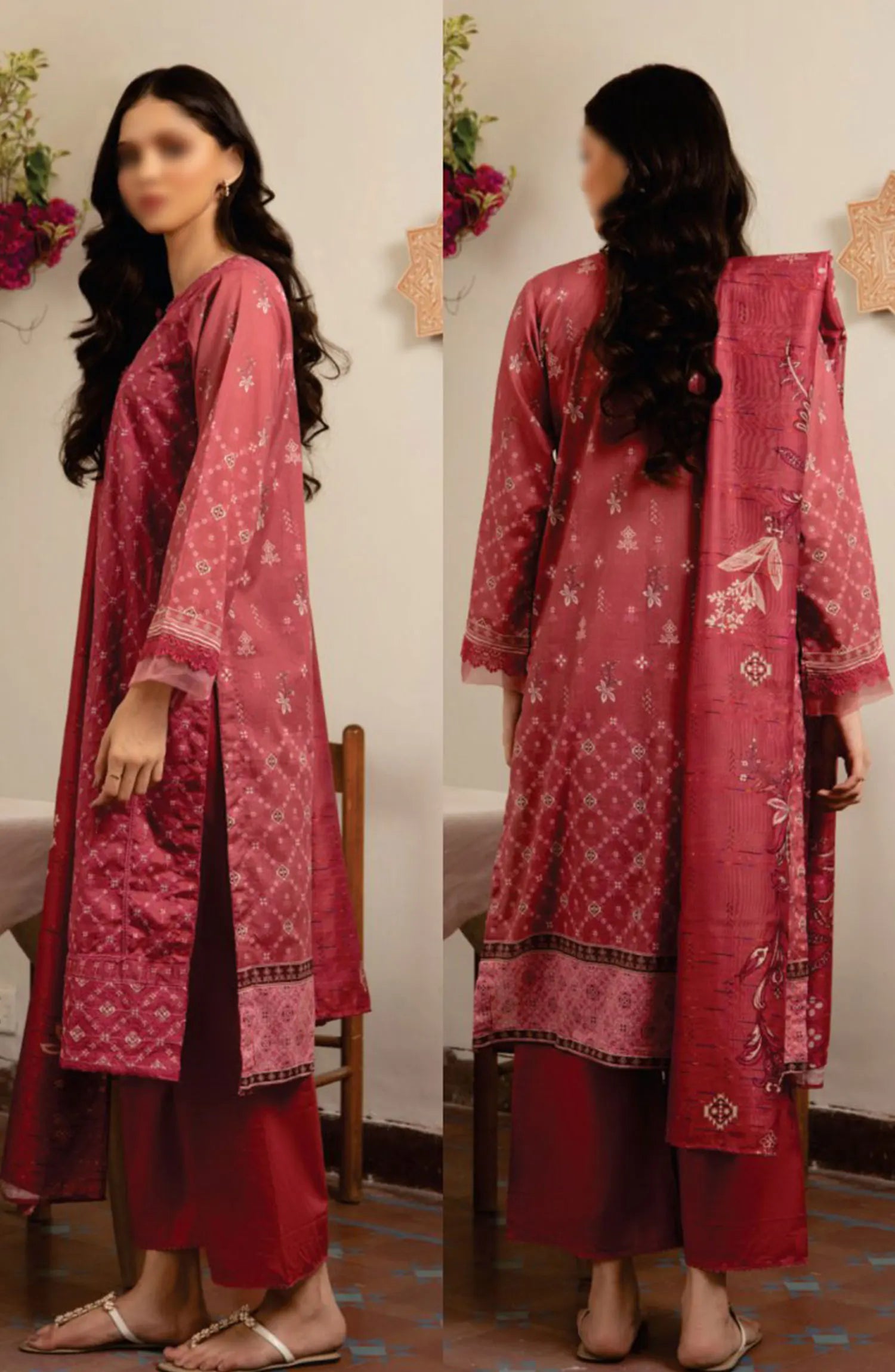 SAHL Embroidered Luxury Lawn Collection has been styled in the image for photography and illustrative purposes.