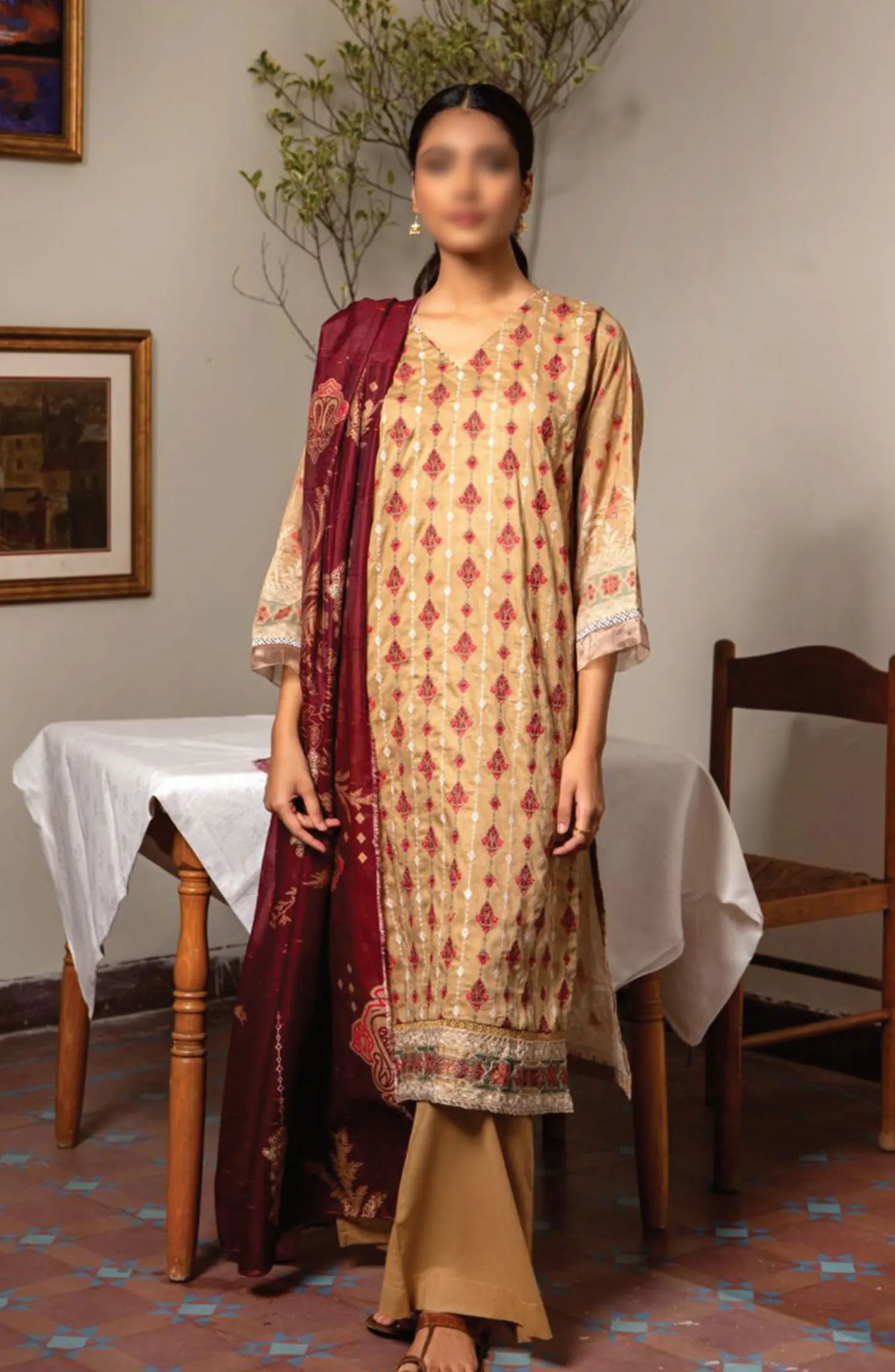 Shaista Supreme Embroidered Peach Unstitched 3 Piece Suit - D-88 - SHS25SP - Maroon - Winter Collection