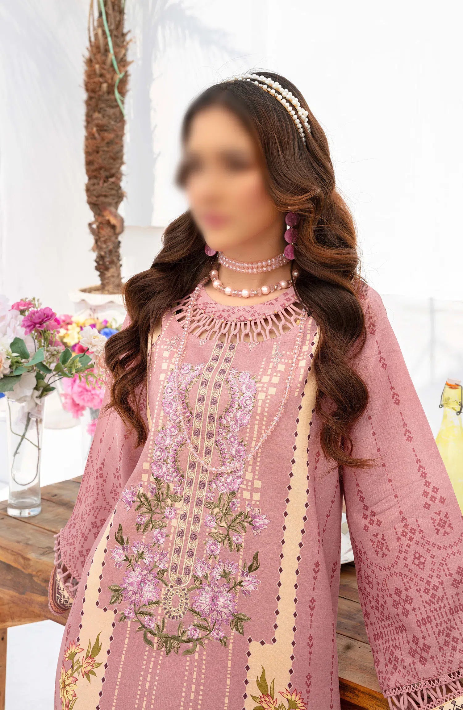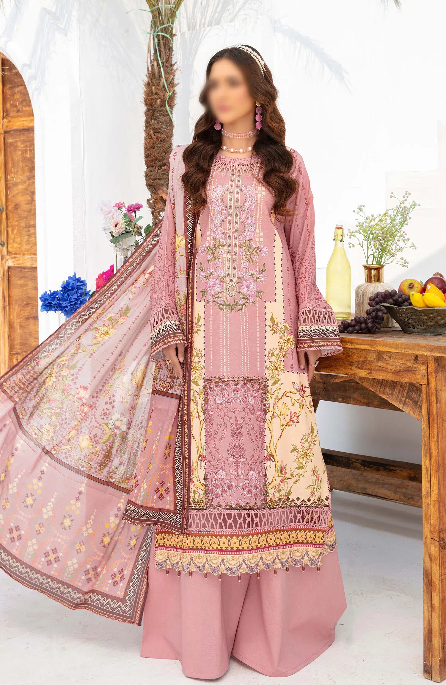 Saira Bano Printed Embroidered Lawn Collection has been styled in the image for photography and illustrative purposes.