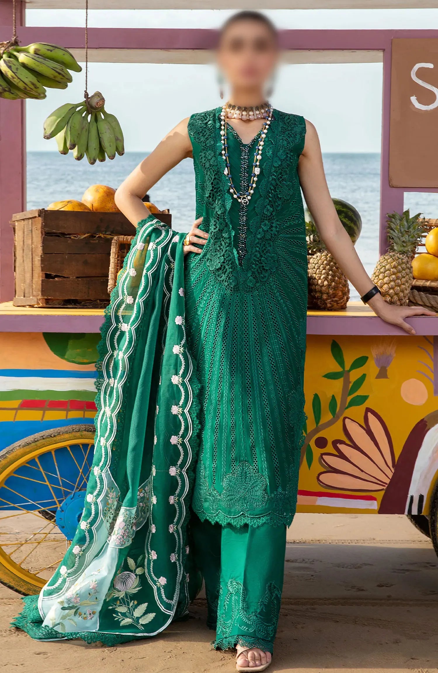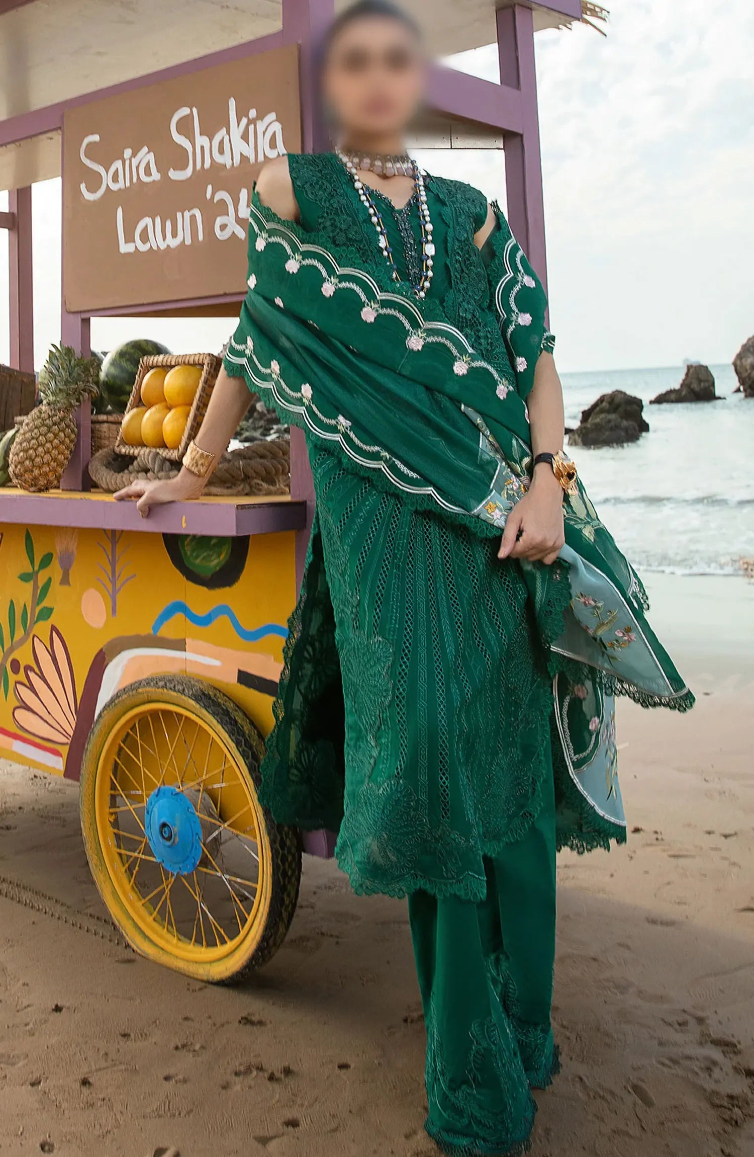 Saira Shakira Lawn 2024 by Crimson has been styled in the image for photography and illustrative purposes.