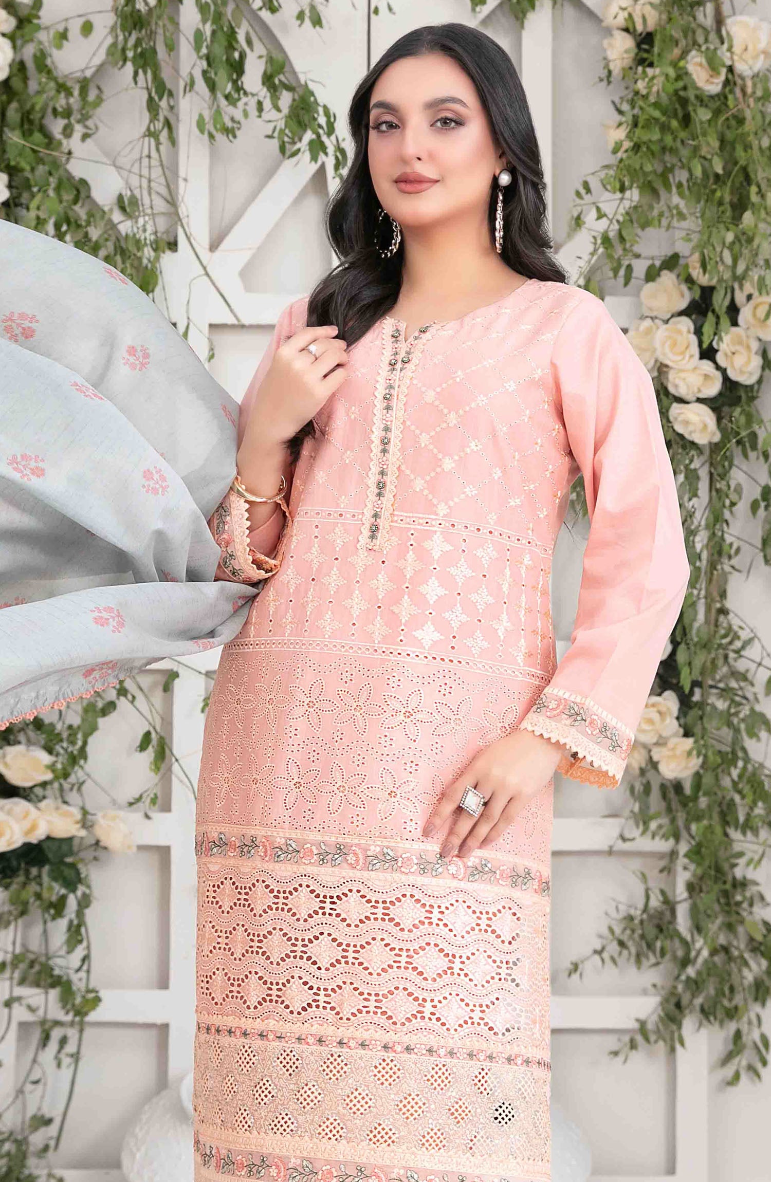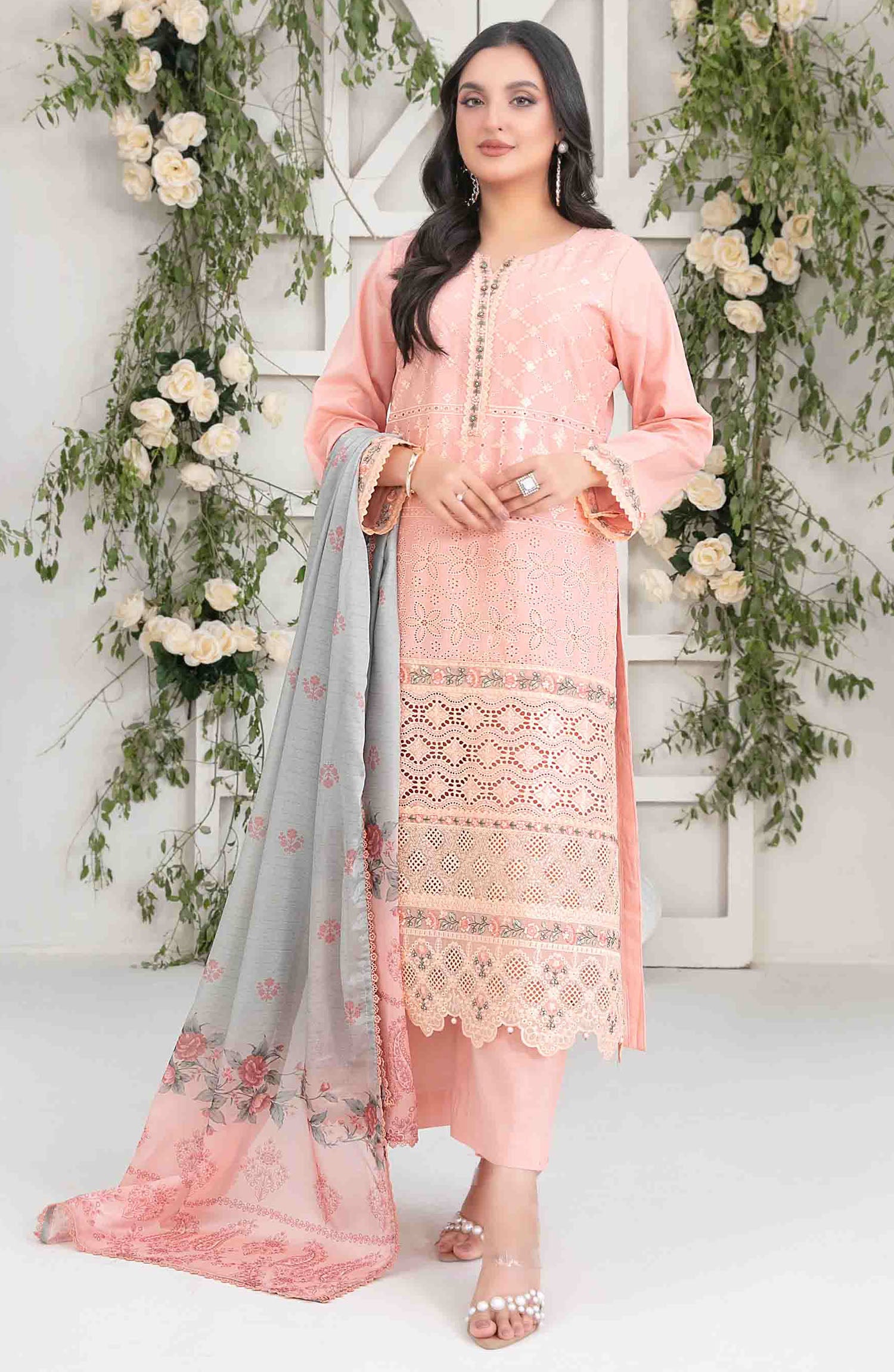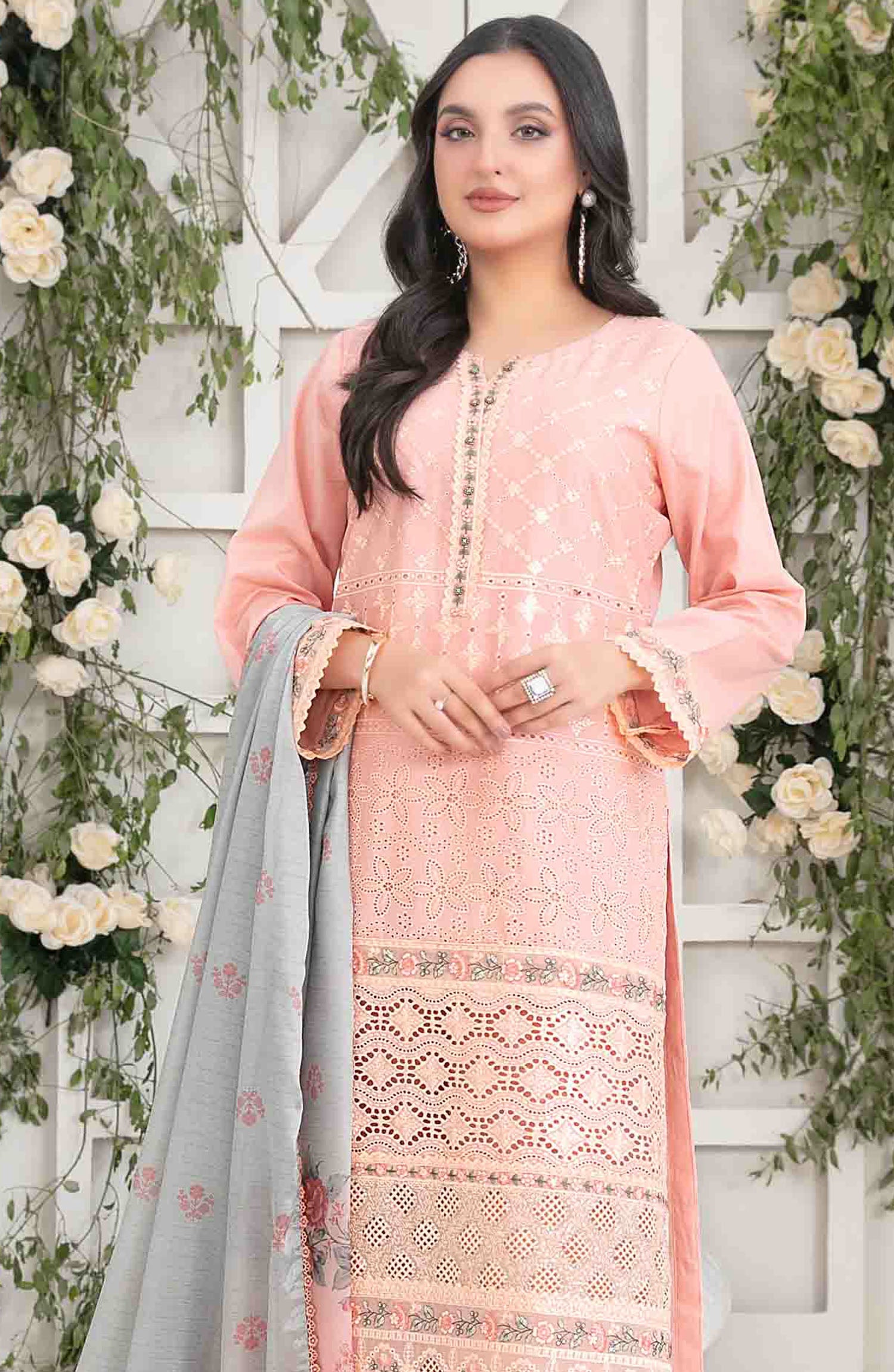 Saija by Tawakkal Fabric Embroidered Lawn Unstitched 3 Piece Suit - D-1233 - TF25SSS - Peach - Summer Collection