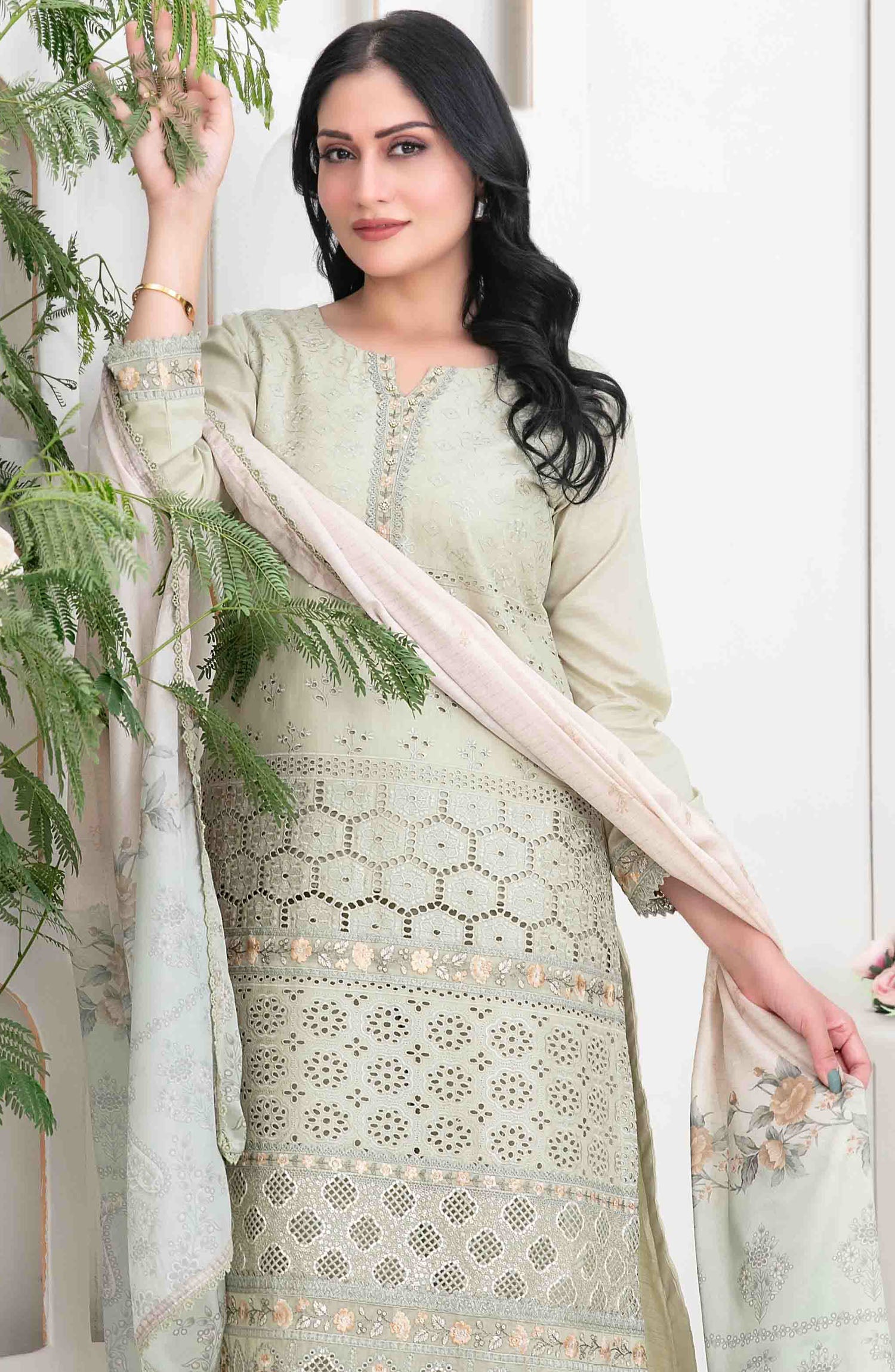 Saija by Tawakkal Fabric Embroidered Lawn Unstitched 3 Piece Suit - D-1234 - TF25SSS - Green - Summer Collection