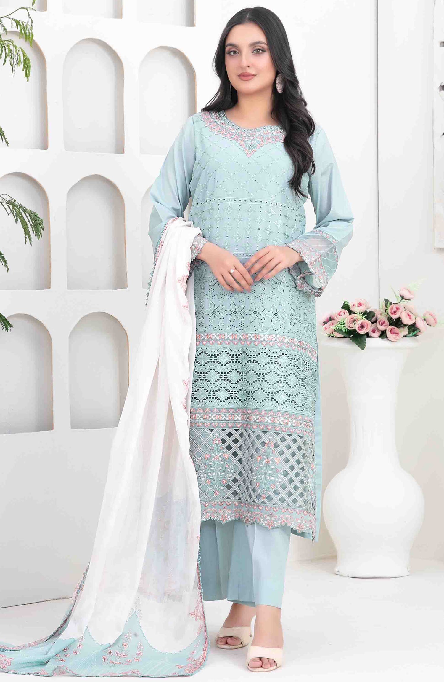 Saija by Tawakkal Fabric Embroidered Lawn Unstitched 3 Piece Suit - D-1235 - TF25SSS - Blue - Summer Collection