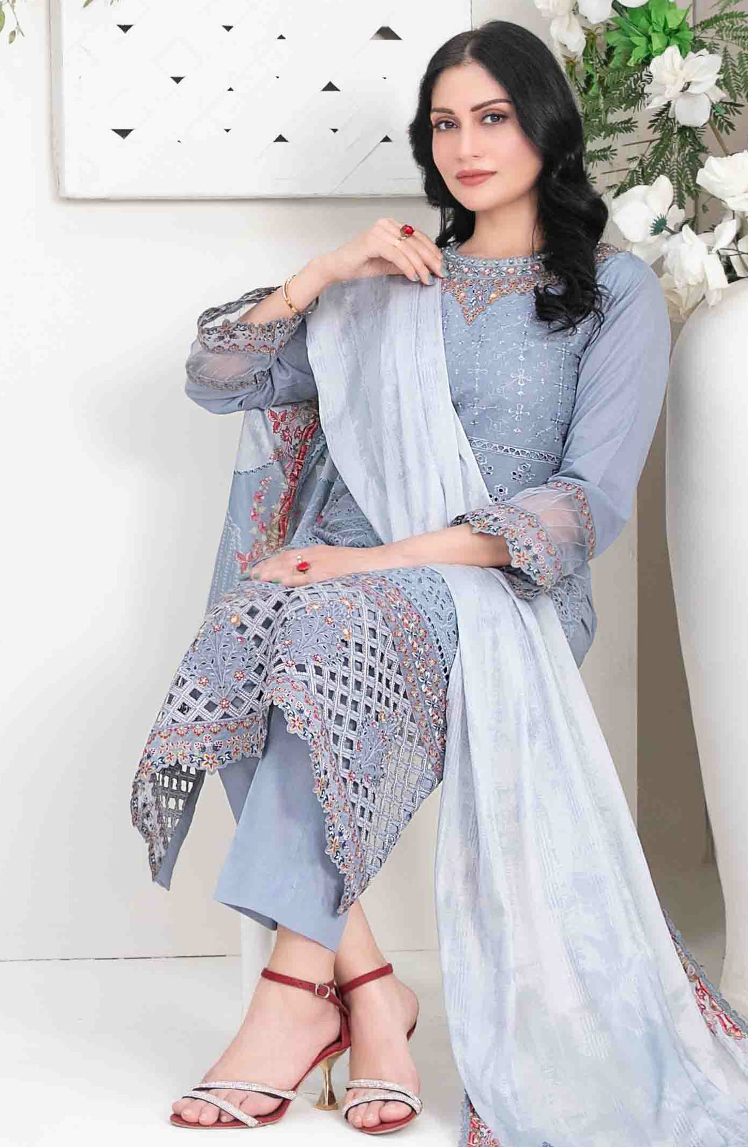 Saija by Tawakkal Fabric Embroidered Lawn Unstitched 3 Piece Suit - D-1237 - TF25SSS - Blue - Summer Collection