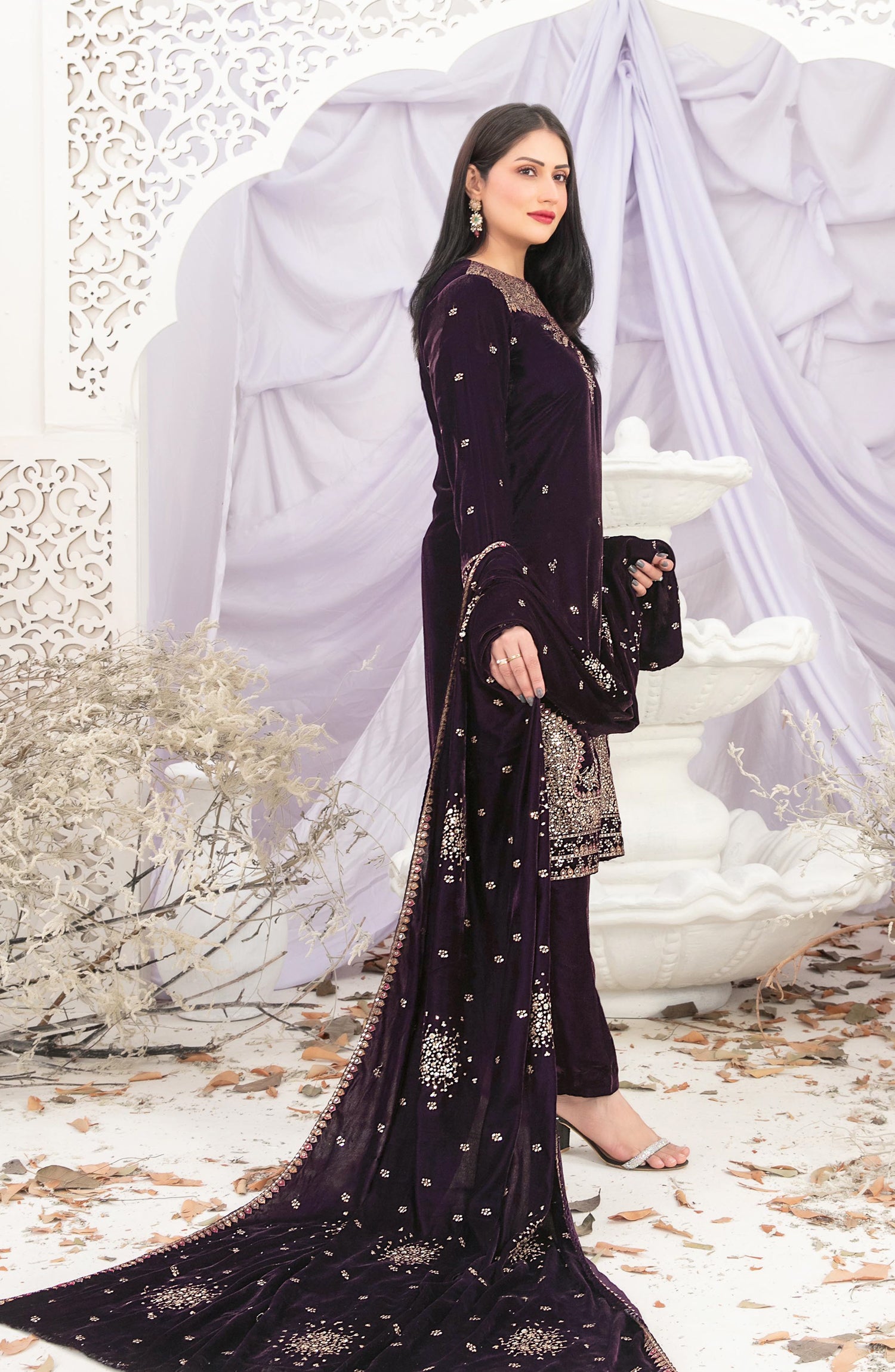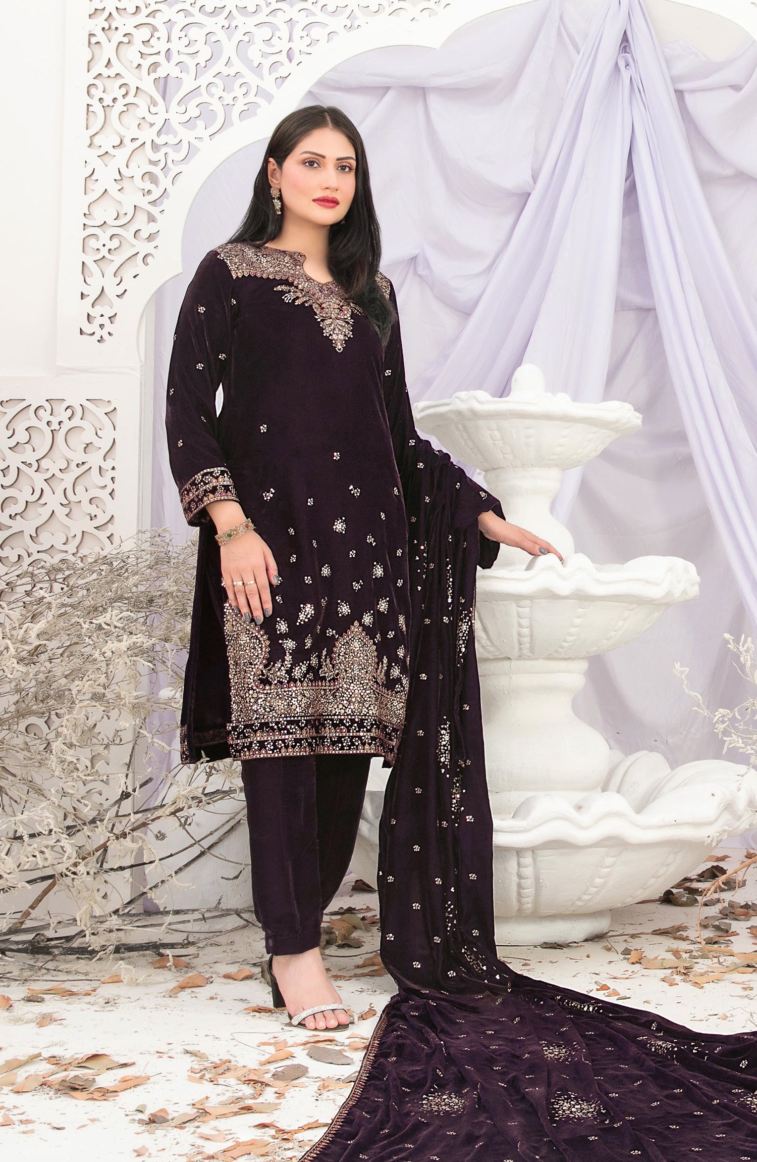 Luxury Fancy Embroidered Velvet Unstitched 3 Piece Suit