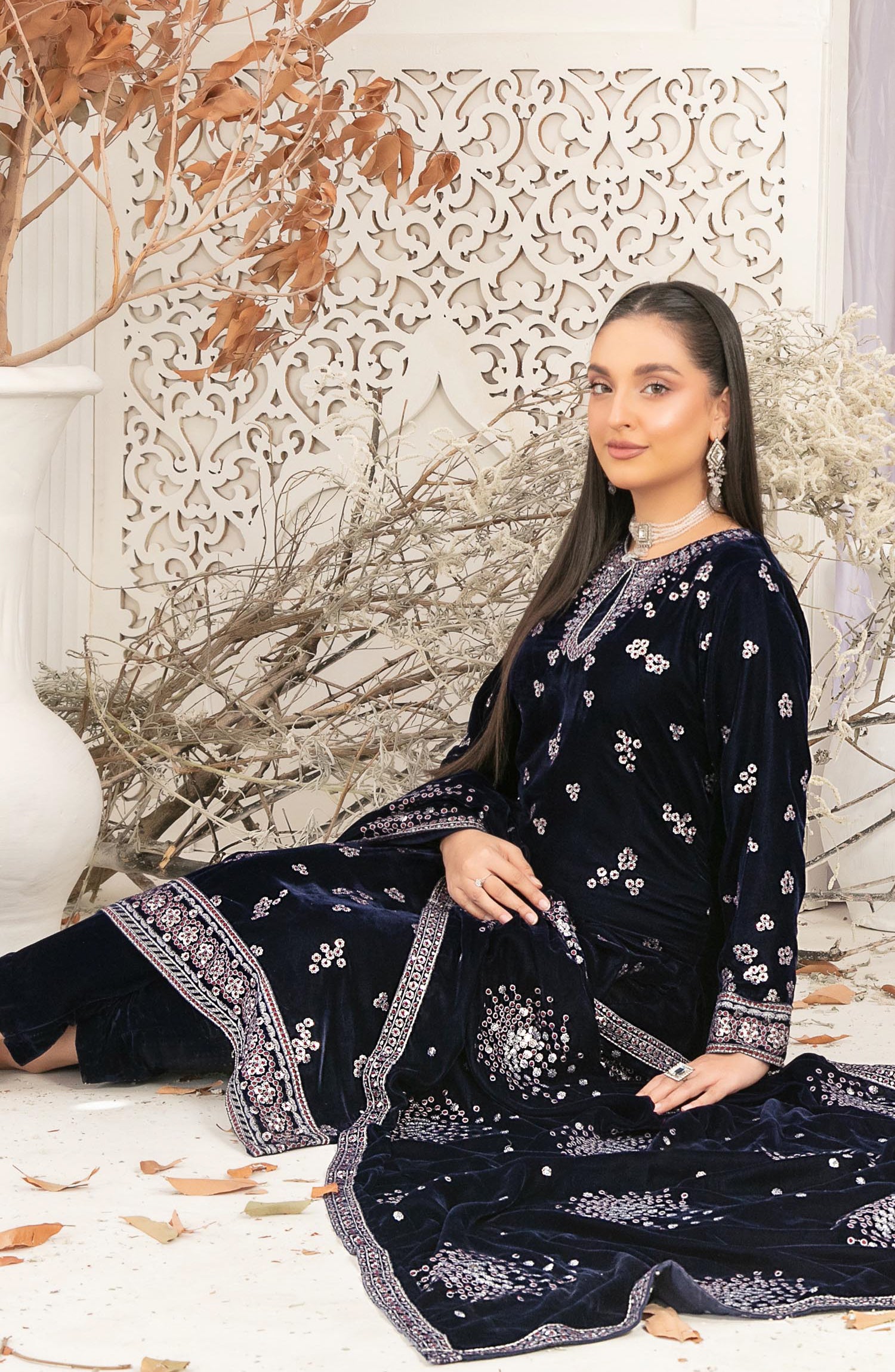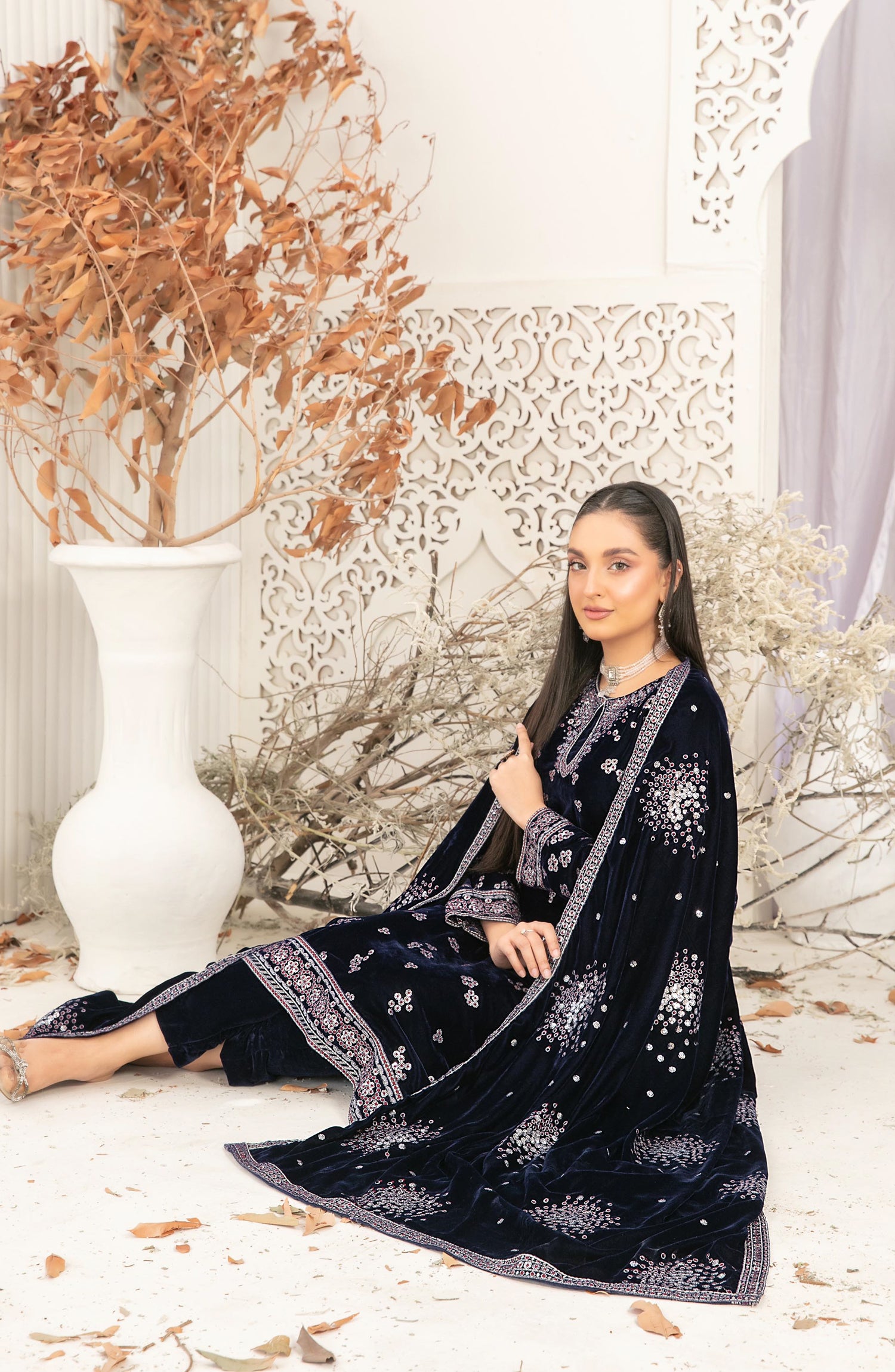 Luxury Fancy Embroidered Velvet Unstitched 3 Piece Suit