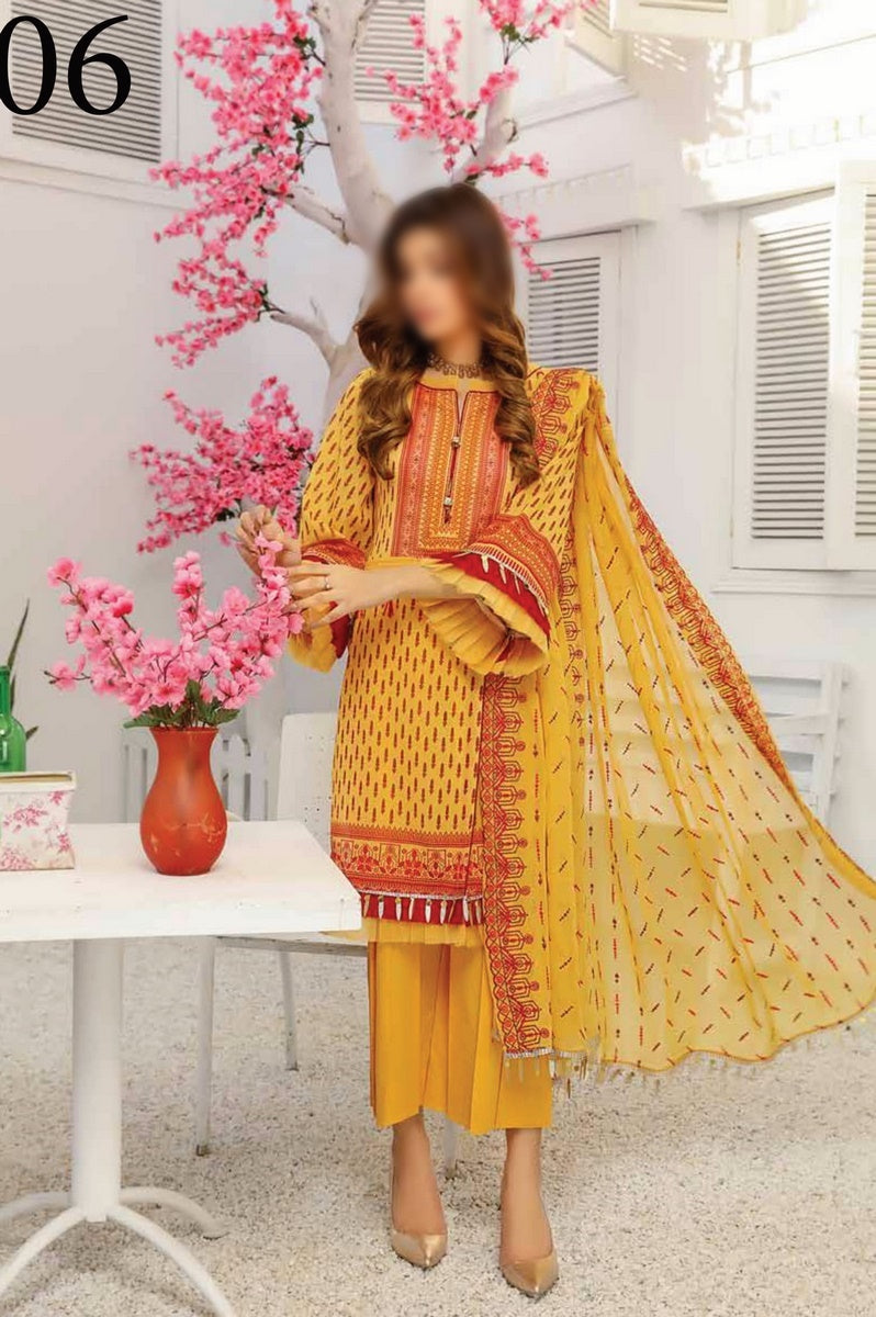 The standard style comes as a long-sleeved kameez with dupatta and trouser/shalwar.