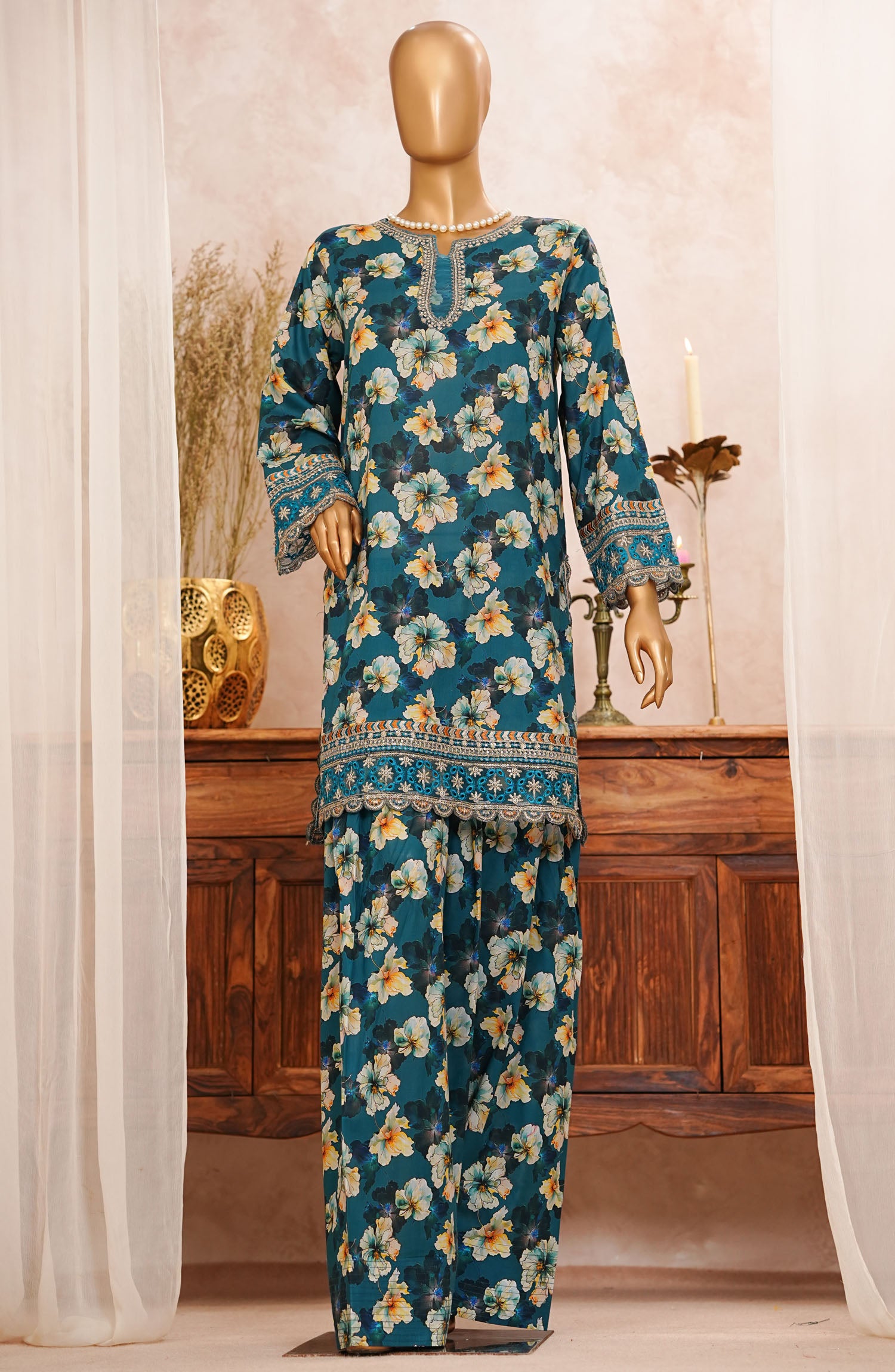 Printed and Cutwork Embroidered Pure Lawn Stitched Farshi Shalwar
