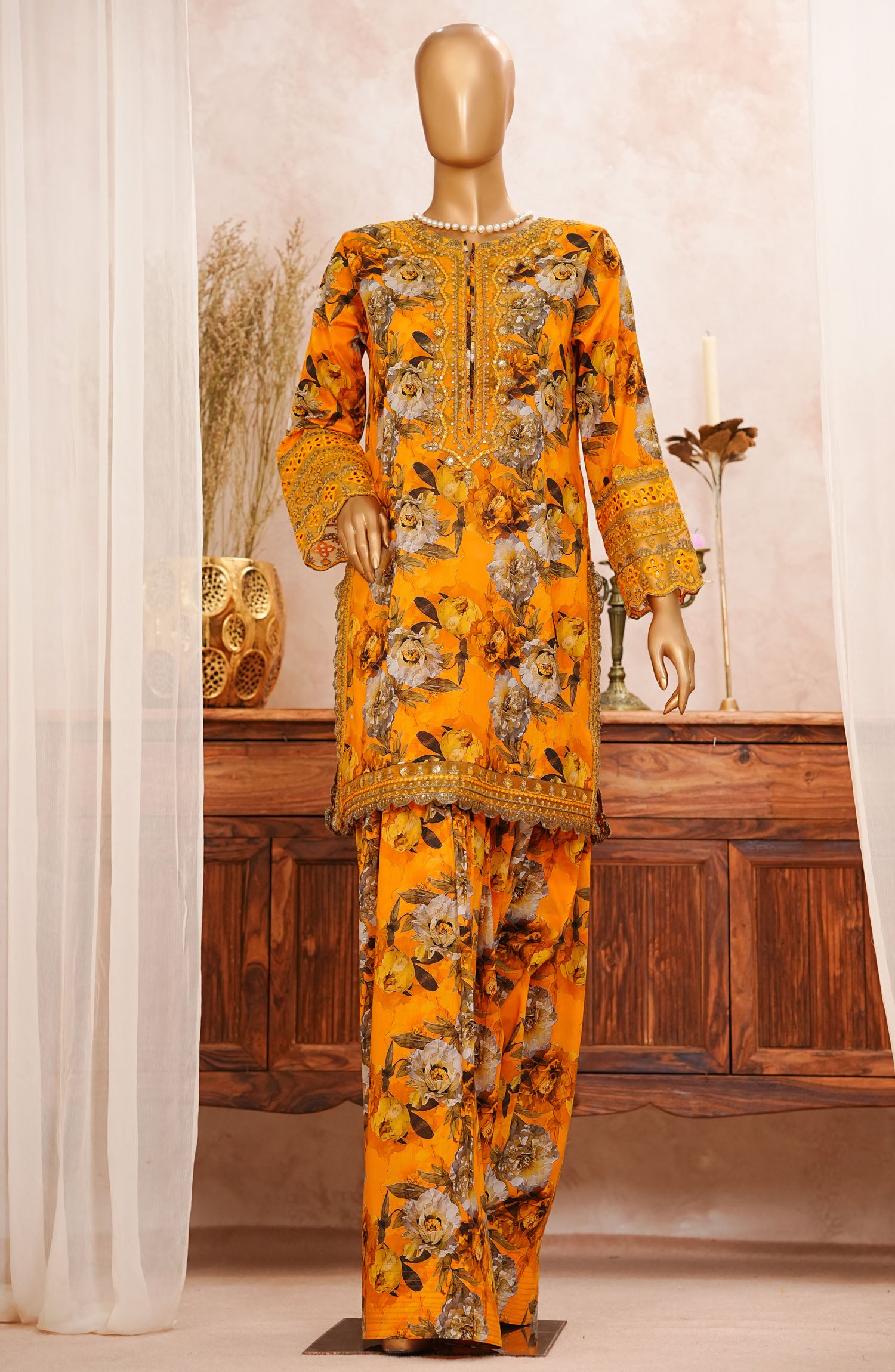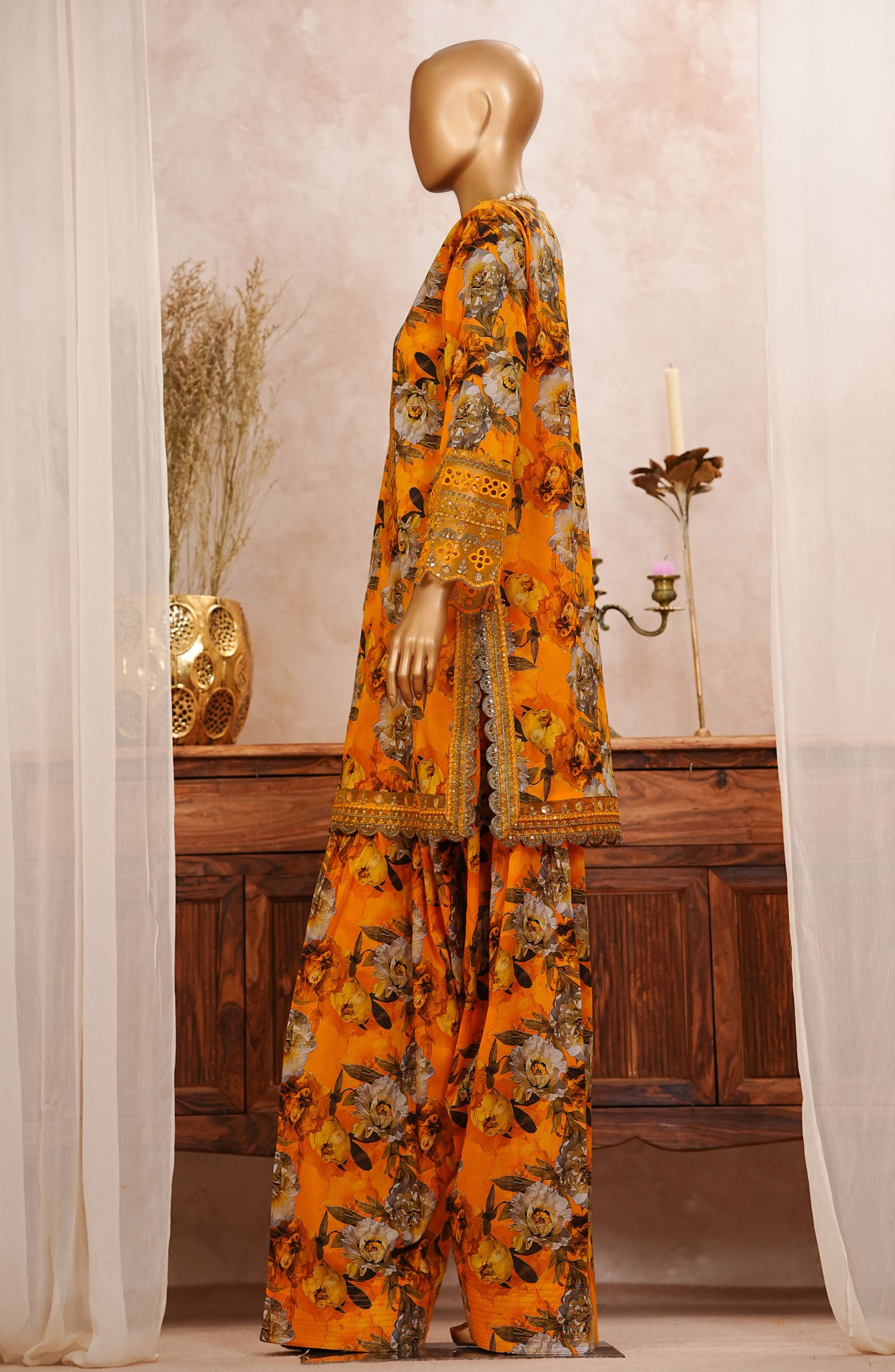 Printed and zari with Sequins and Cutwork Embroidered Pure Lawn Stitched Shirt