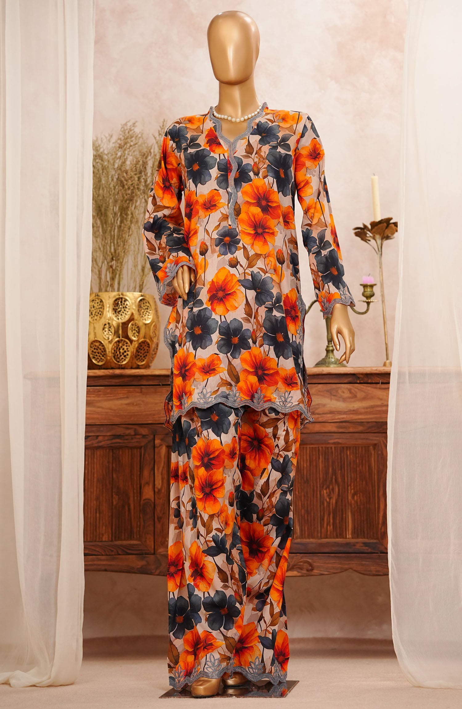 Printed and Cutwork Embroidered Pure Lawn Stitched Farshi Shalwar