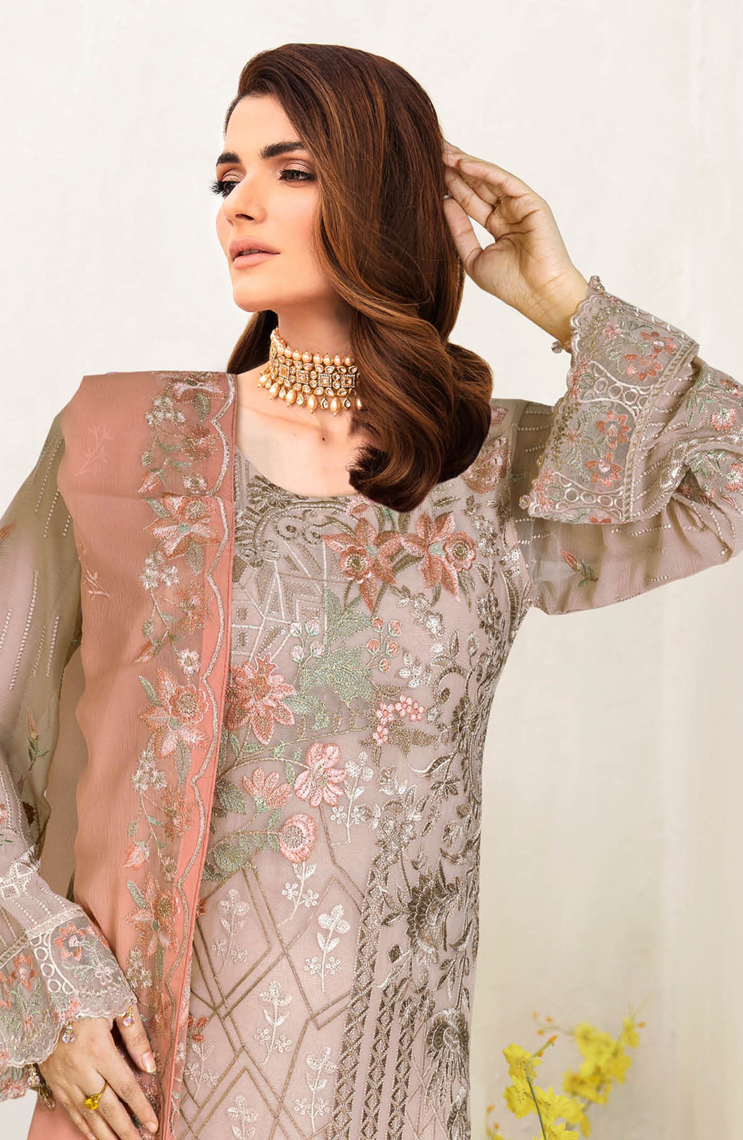 Home Sangeet by Ramsha Embroidered Chiffon Unstitched 3 Piece Suit - B-201 - R25CCV2 - Grey - Festive Collection