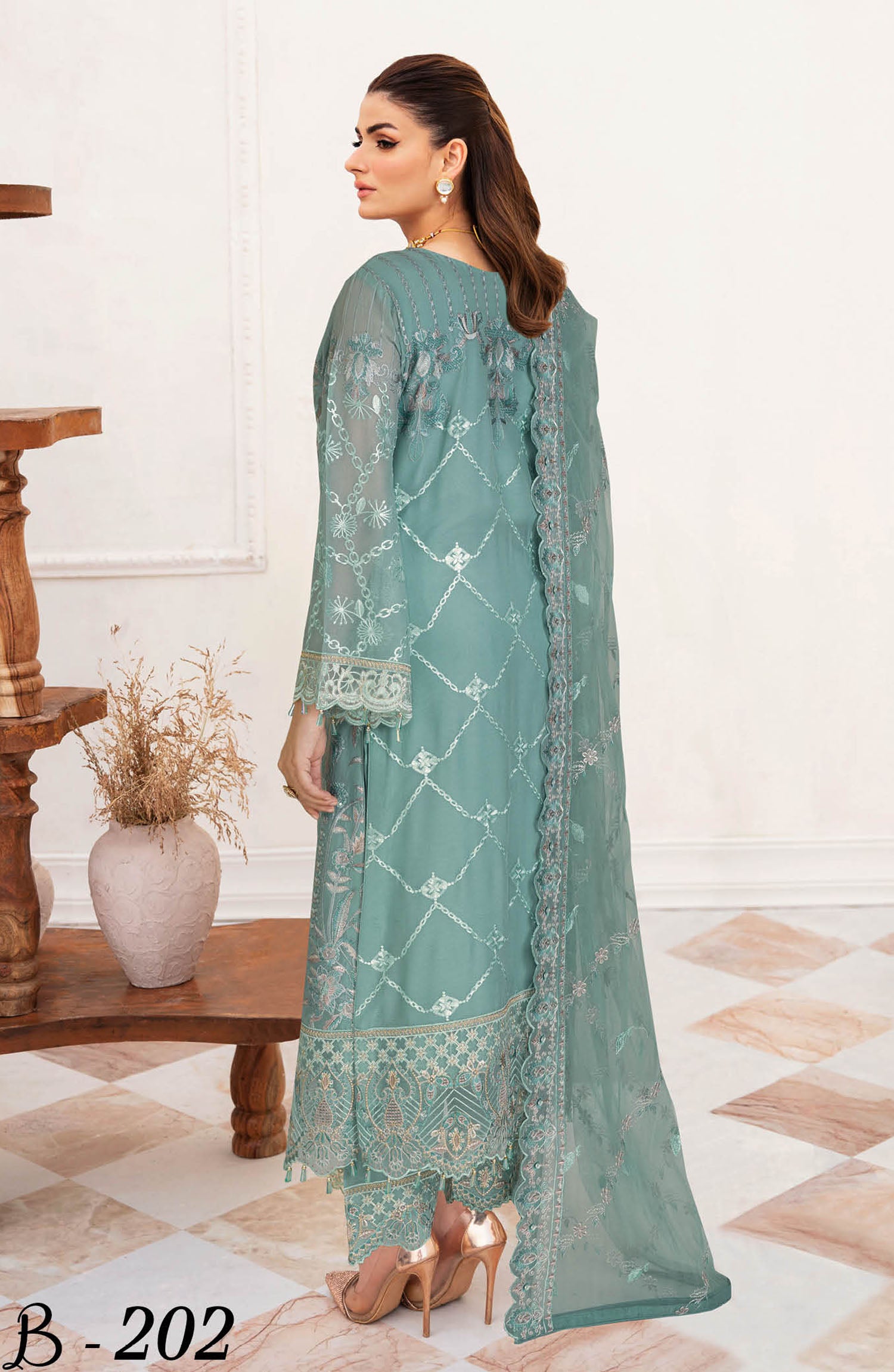Sangeet by Ramsha Embroidered Chiffon Unstitched 3 Piece Suit - B-202 - R25CCV2 - Sea Green - Festive Collection