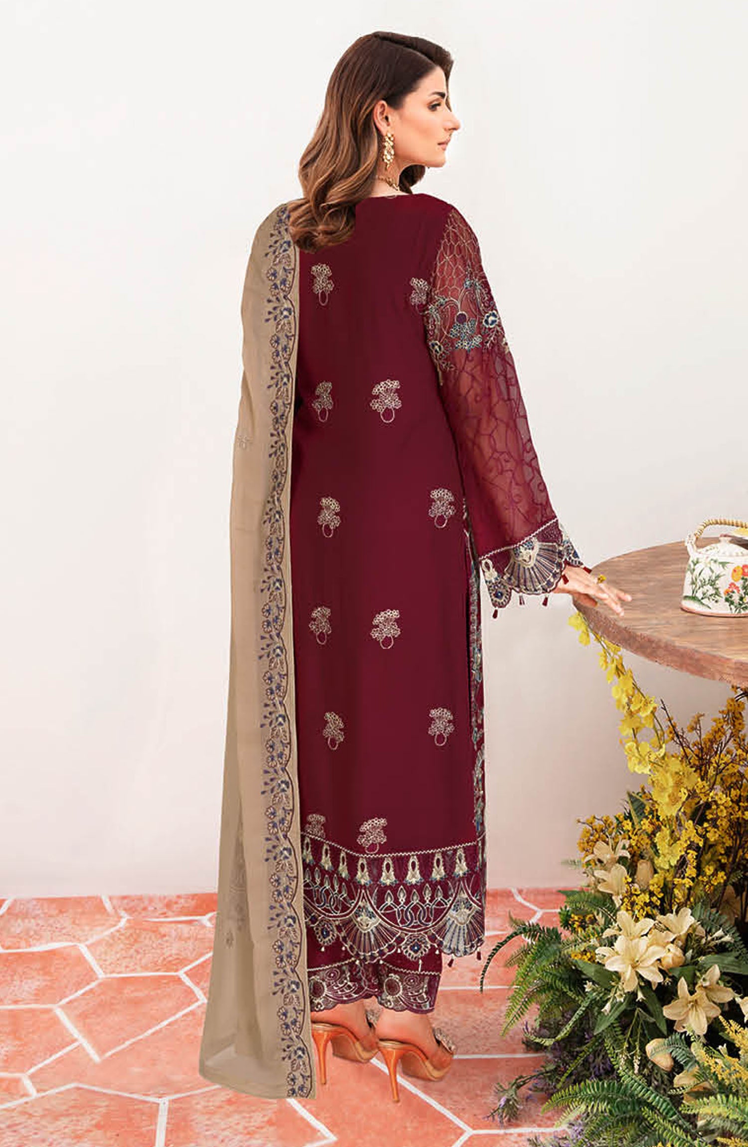 Home Sangeet by Ramsha Embroidered Chiffon Unstitched 3 Piece Suit - B-203 - R25CCV2 - Maroon - Festive Collection
