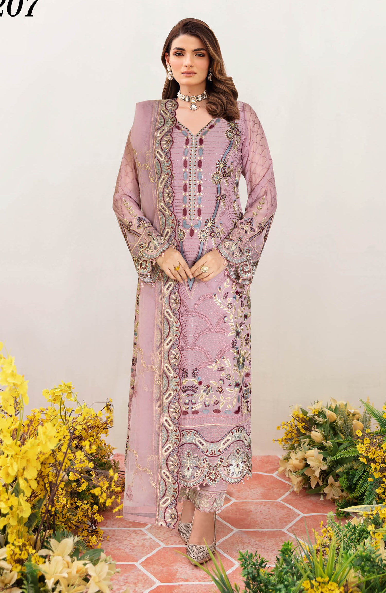 Home Sangeet by Ramsha Embroidered Chiffon Unstitched 3 Piece Suit - B-207 - R25CCV2 - Pink - Festive Collection