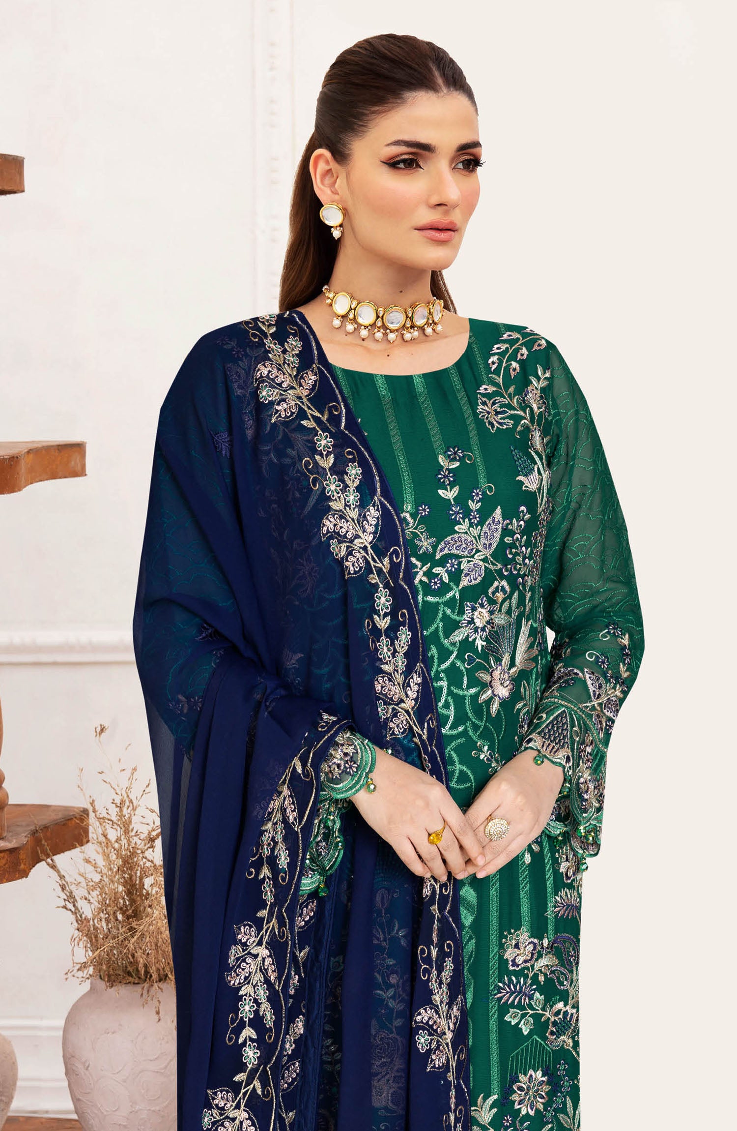 Sangeet by Ramsha Embroidered Chiffon Unstitched 3 Piece Suit - B-208 - R25CCV2 - Green - Festive Collection
