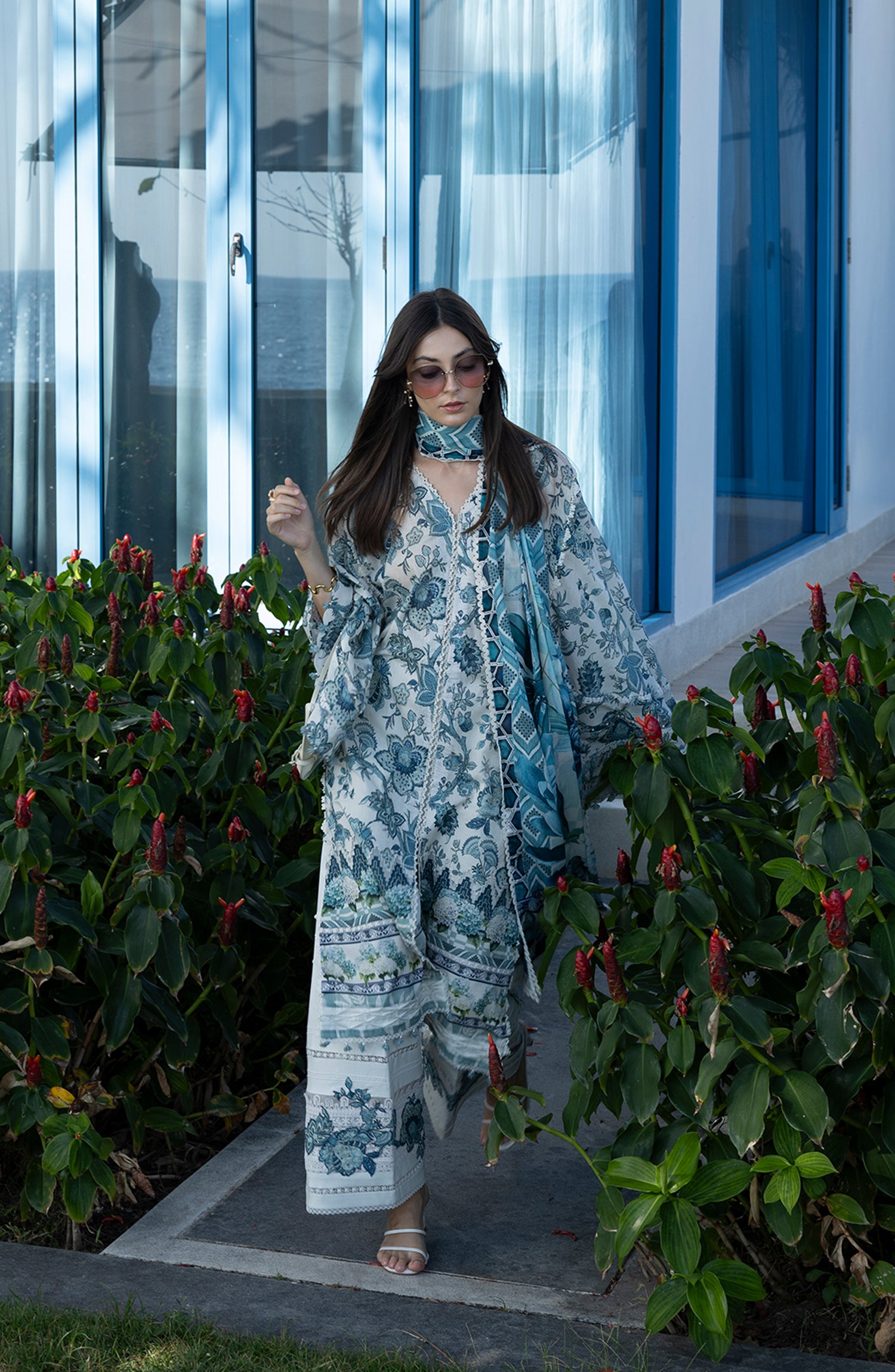 Santorini by Elaf Premium Digital Printed Lawn Unstitched 3 Piece Suit - EPN-05 SURREAL - EL26SNT - Blue - Summer Collection