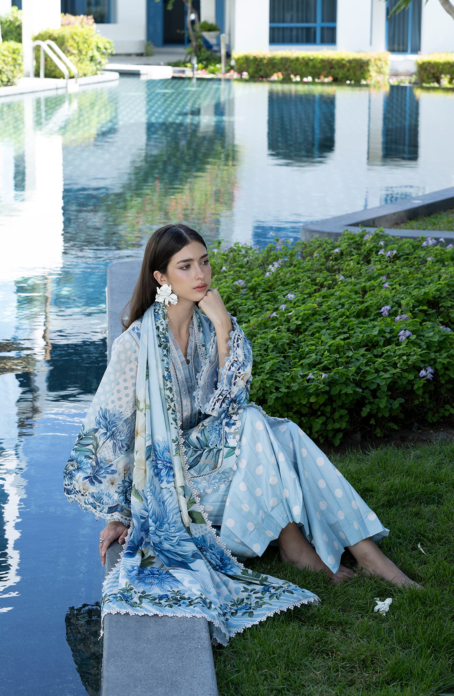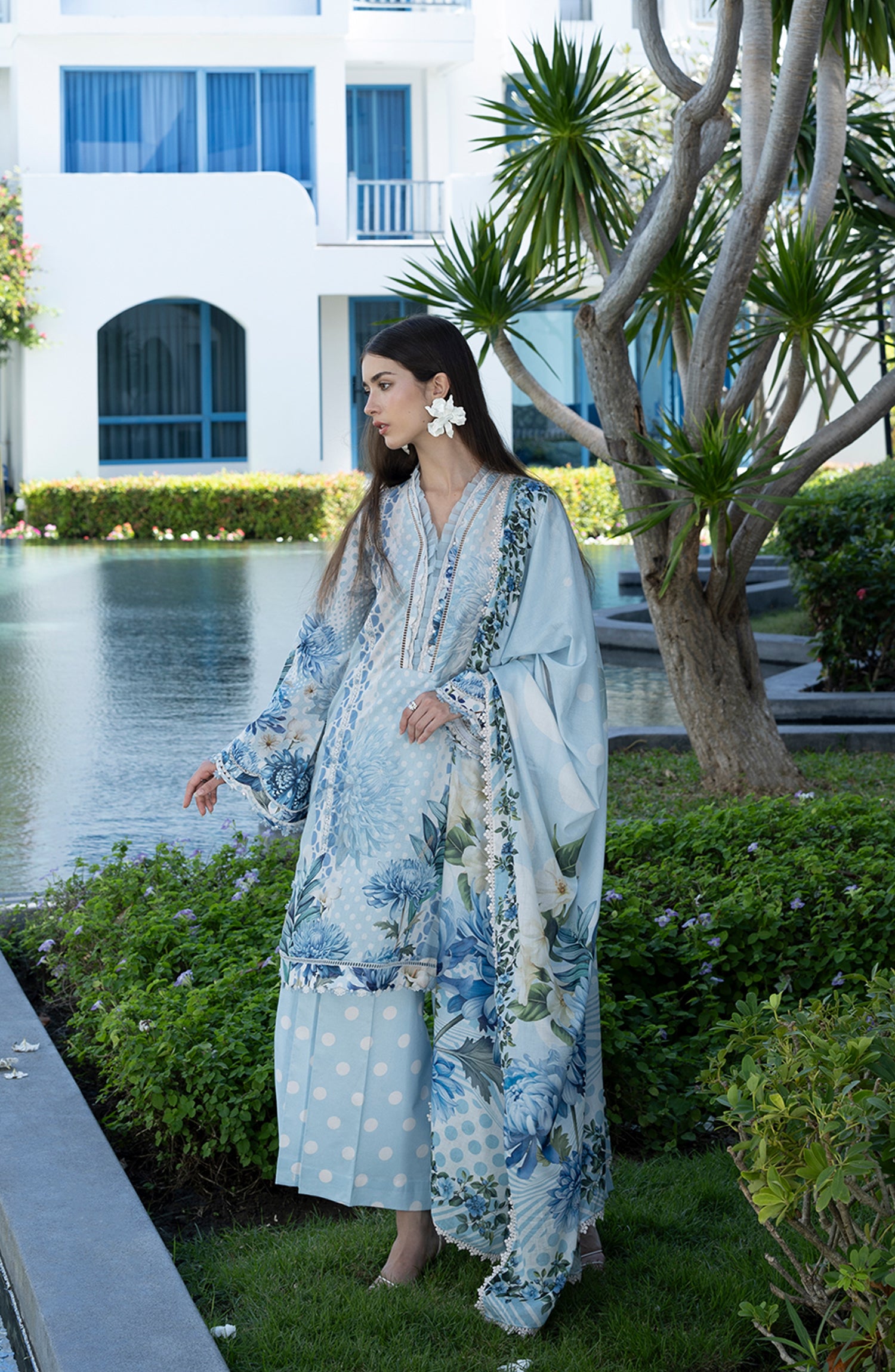 Santorini by Elaf Premium Digital Printed Lawn Unstitched 3 Piece Suit - EPN-1A OCEAN PETALS - EL26SNT - Blue - Summer Collection