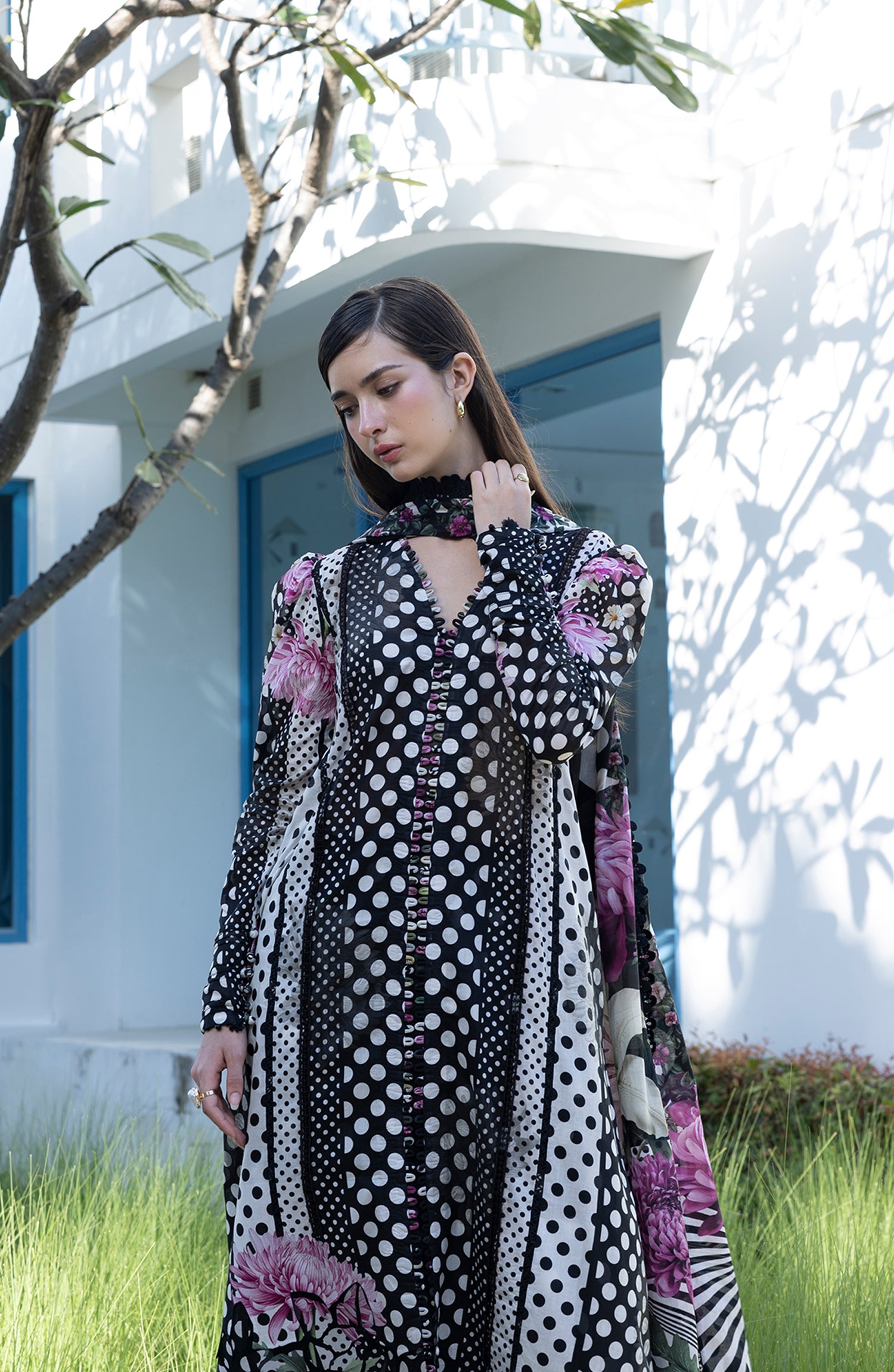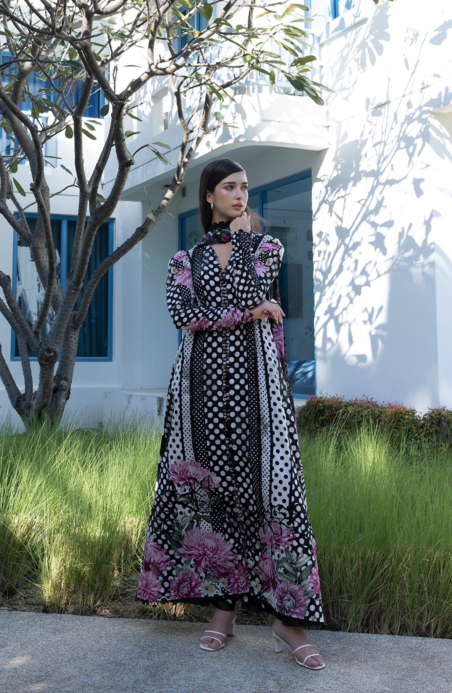 Santorini by Elaf Premium Digital Printed Lawn Unstitched 3 Piece Suit - EPN-1B POIS & HER - EL26SNT - Black - Summer Collection