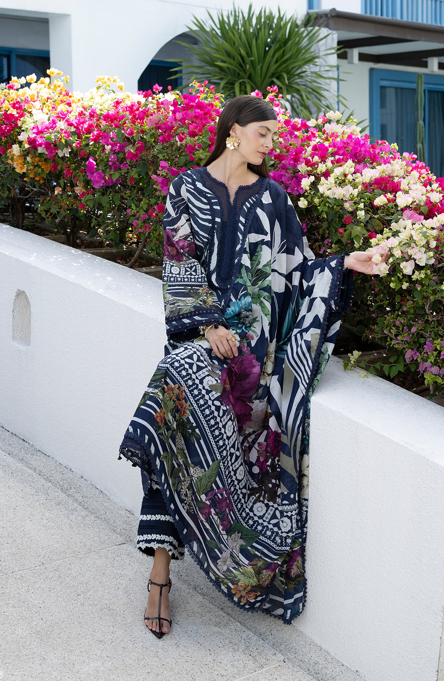 Santorini by Elaf Premium Digital Printed Lawn Unstitched 3 Piece Suit - EPN-3A STARRY NIGHT - EL26SNT - Black - Summer Collection