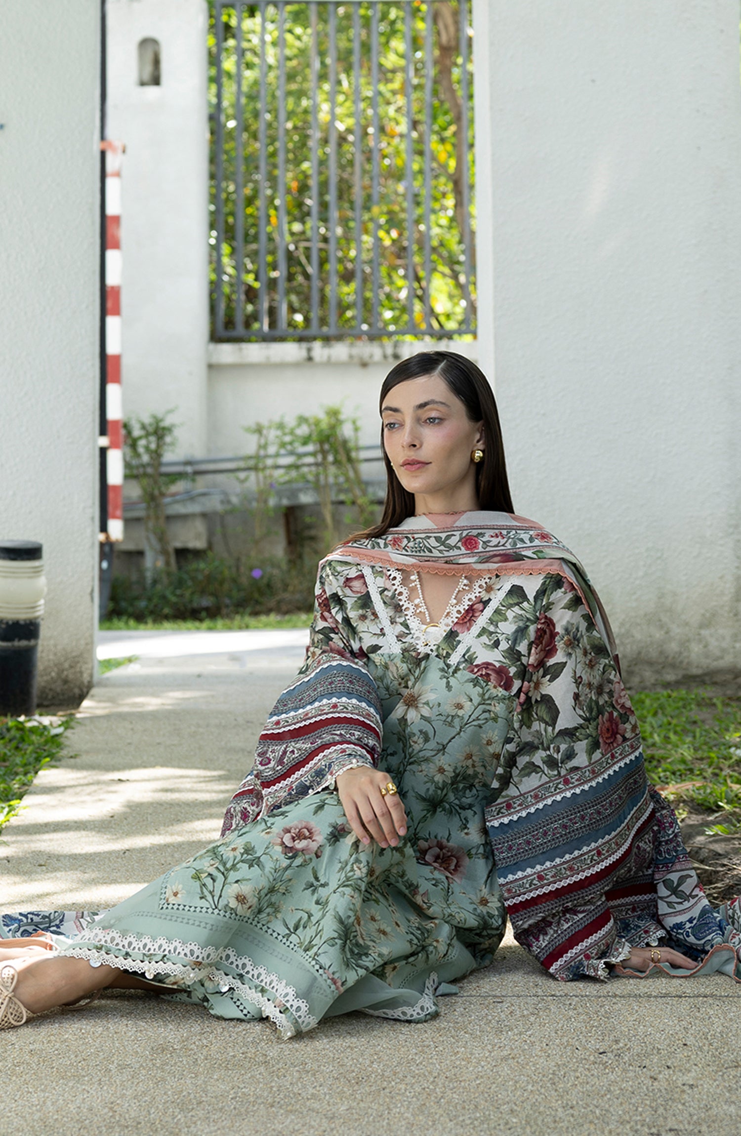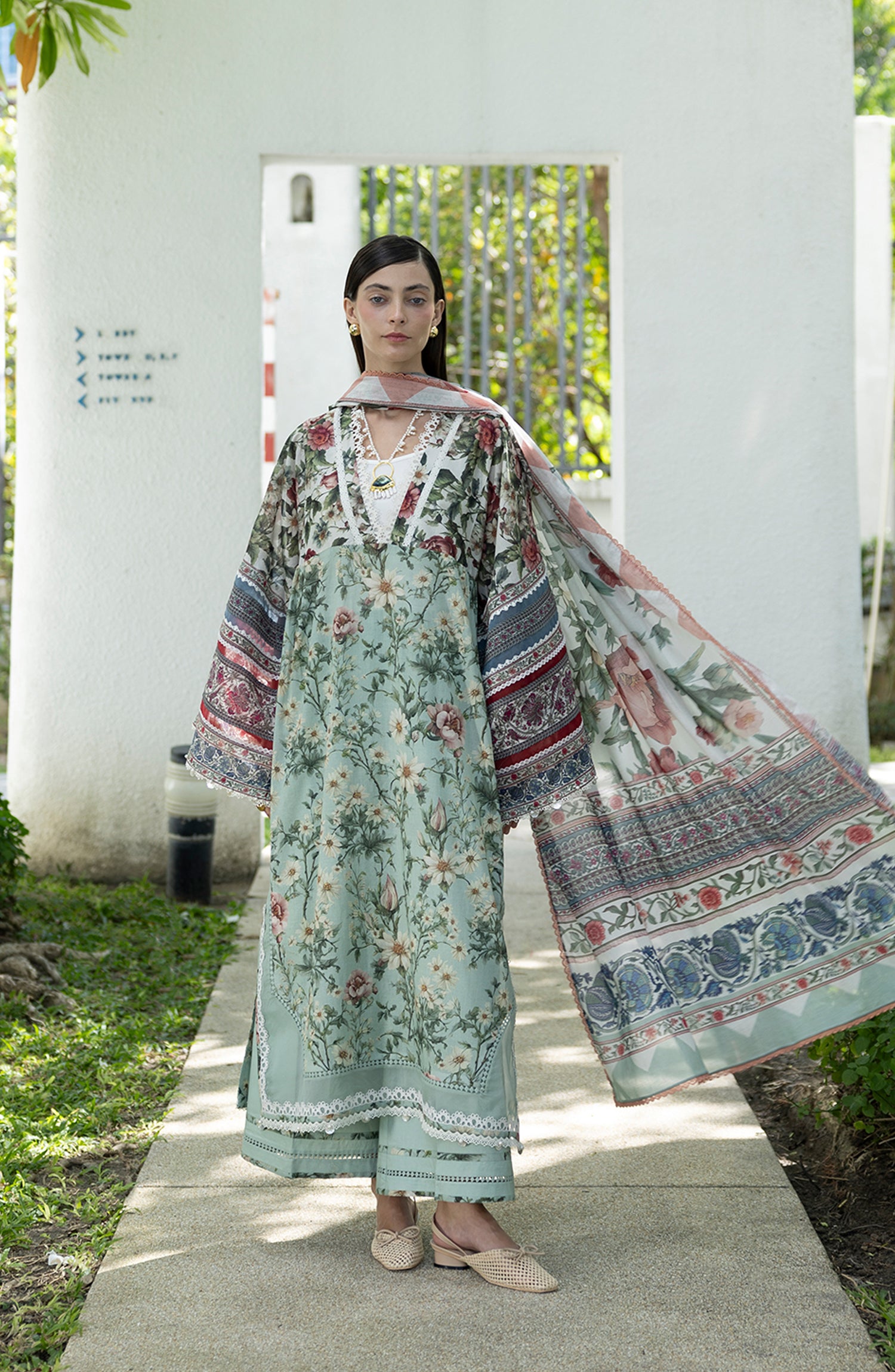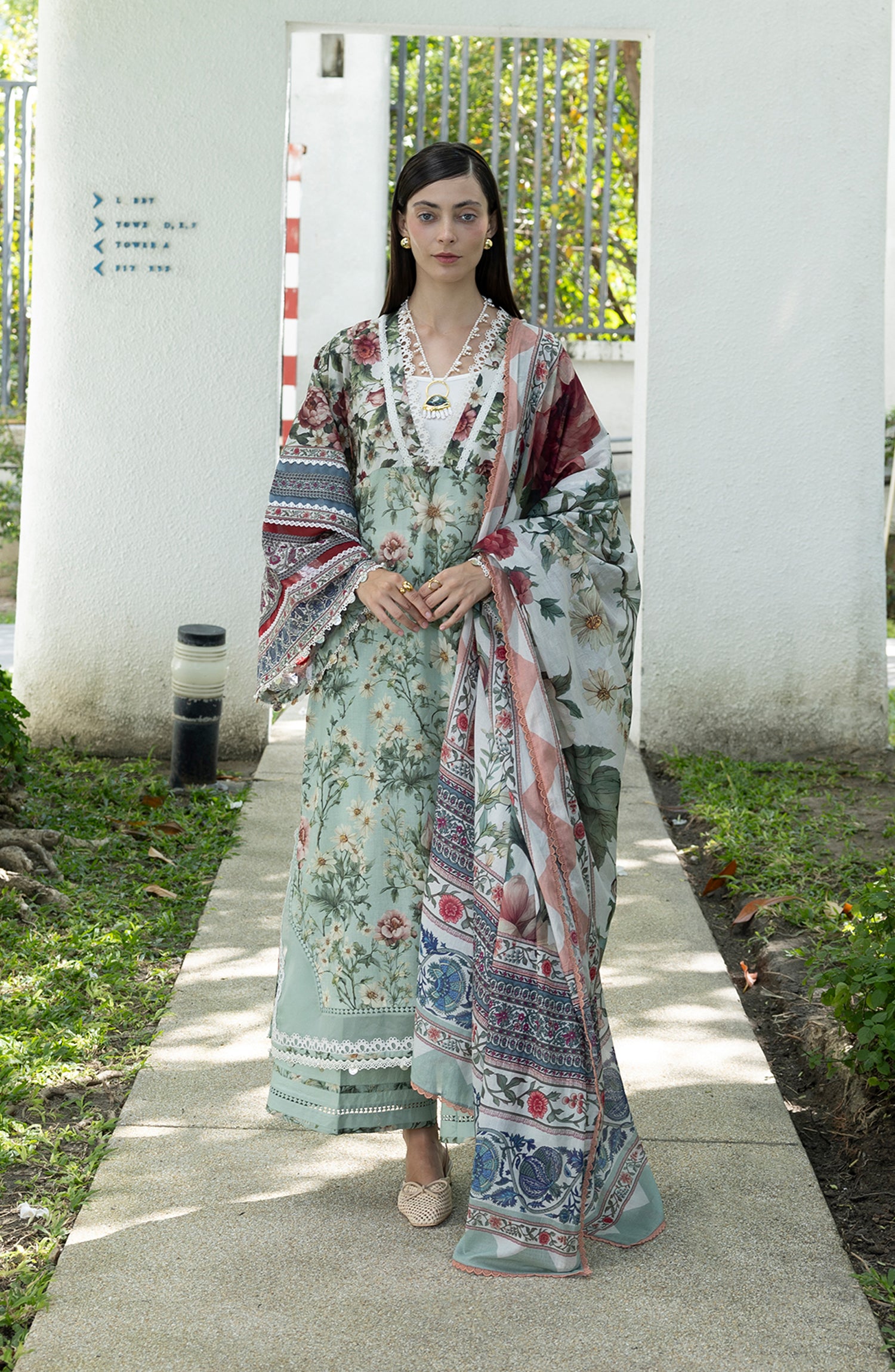Santorini by Elaf Premium Digital Printed Lawn Unstitched 3 Piece Suit - EPN-6B OPALINE GARDEN - EL26SNT - Green - Summer Collection