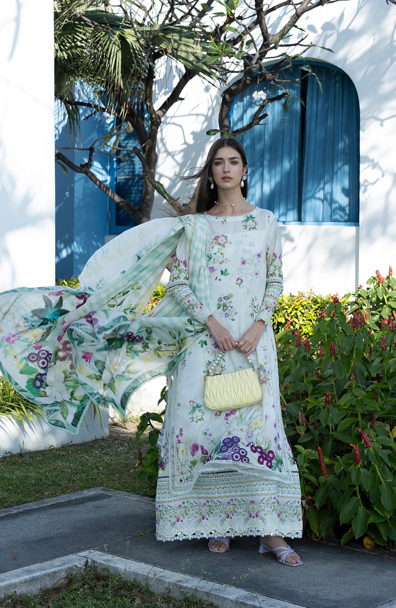 Santorini by Elaf Premium Digital Printed Lawn Unstitched 3 Piece Suit - EPN-7B MOON FLOWER - EL26SNT - Pista Green - Summer Collection