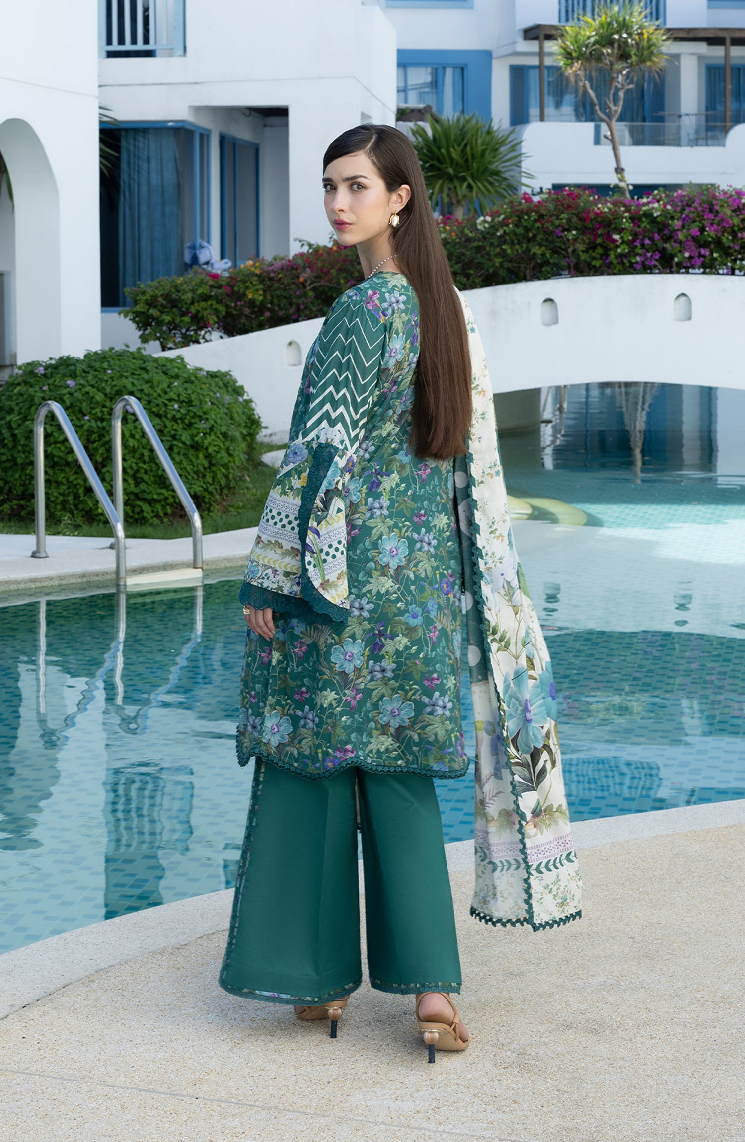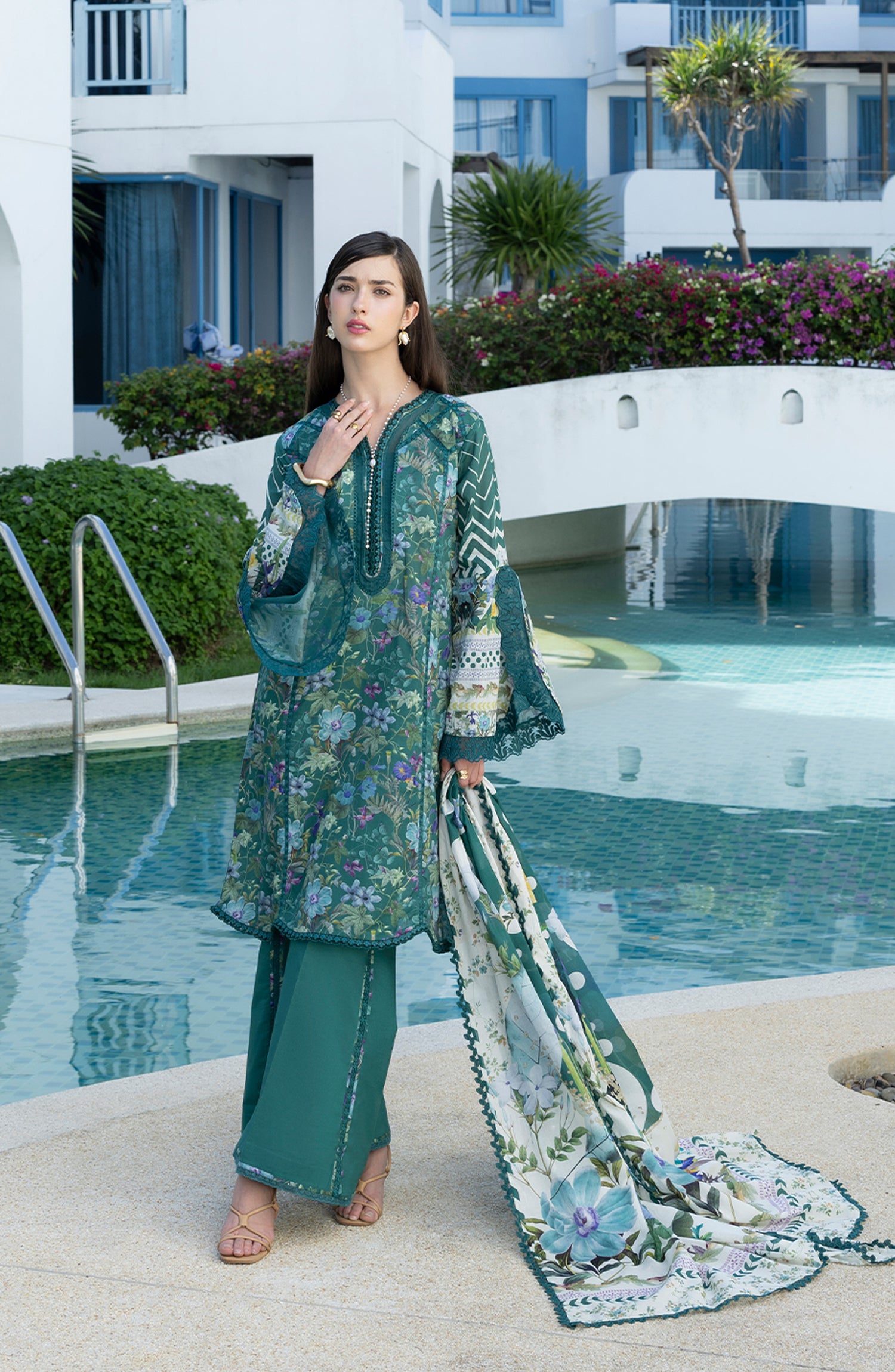 Santorini by Elaf Premium Digital Printed Lawn Unstitched 3 Piece Suit - EPN-9A PEACOCK - EL26SNT - Green - Summer Collection