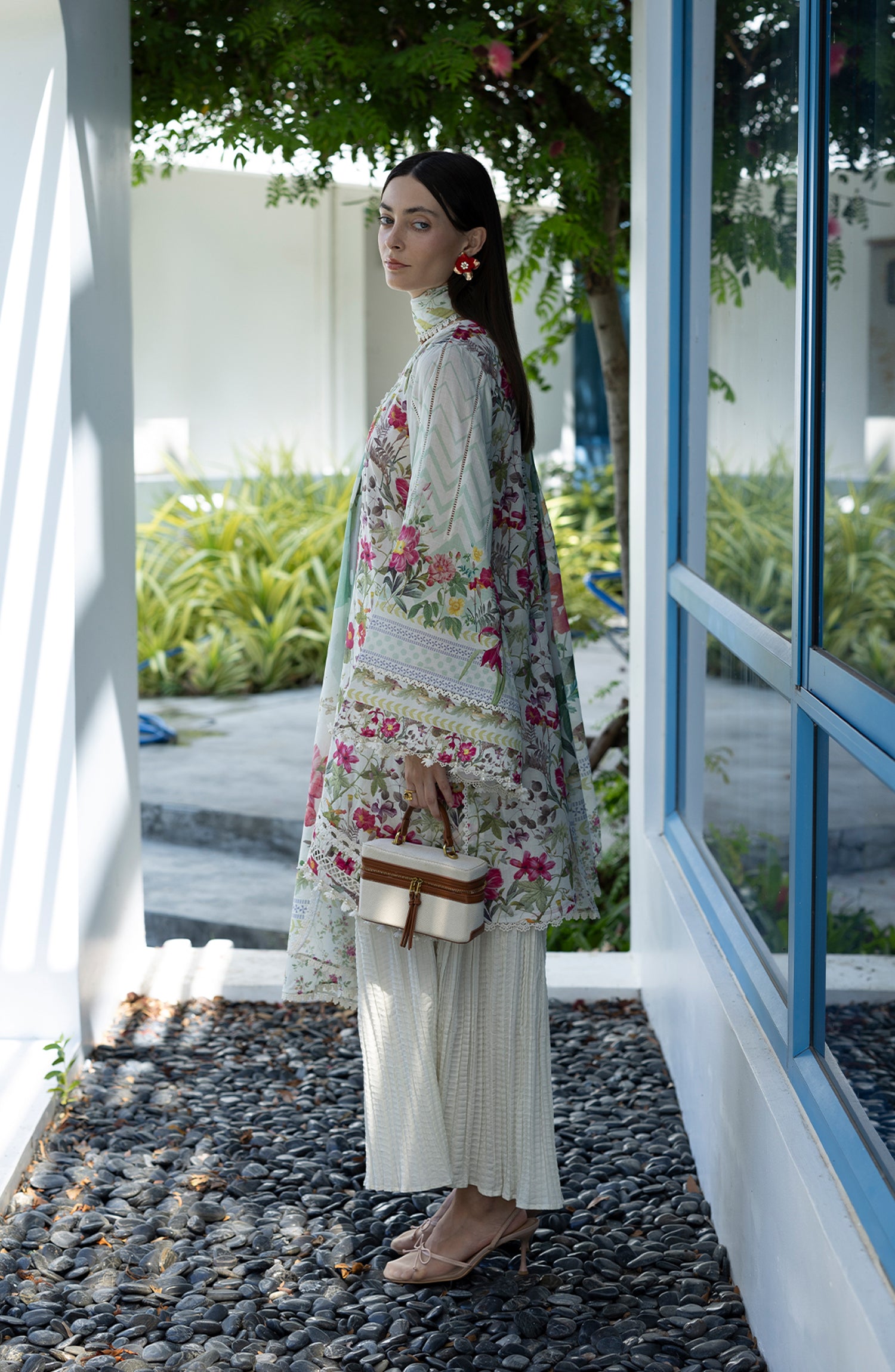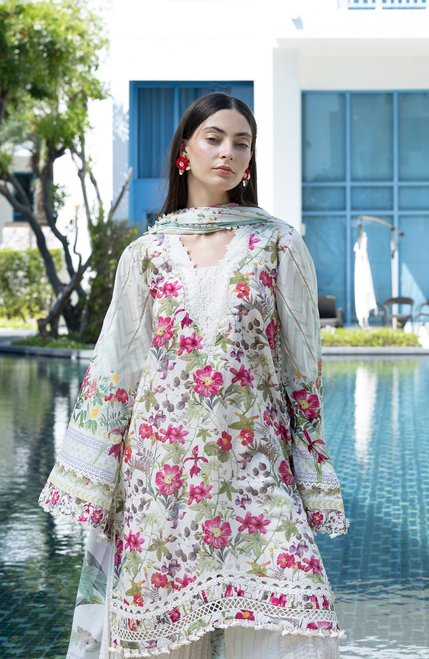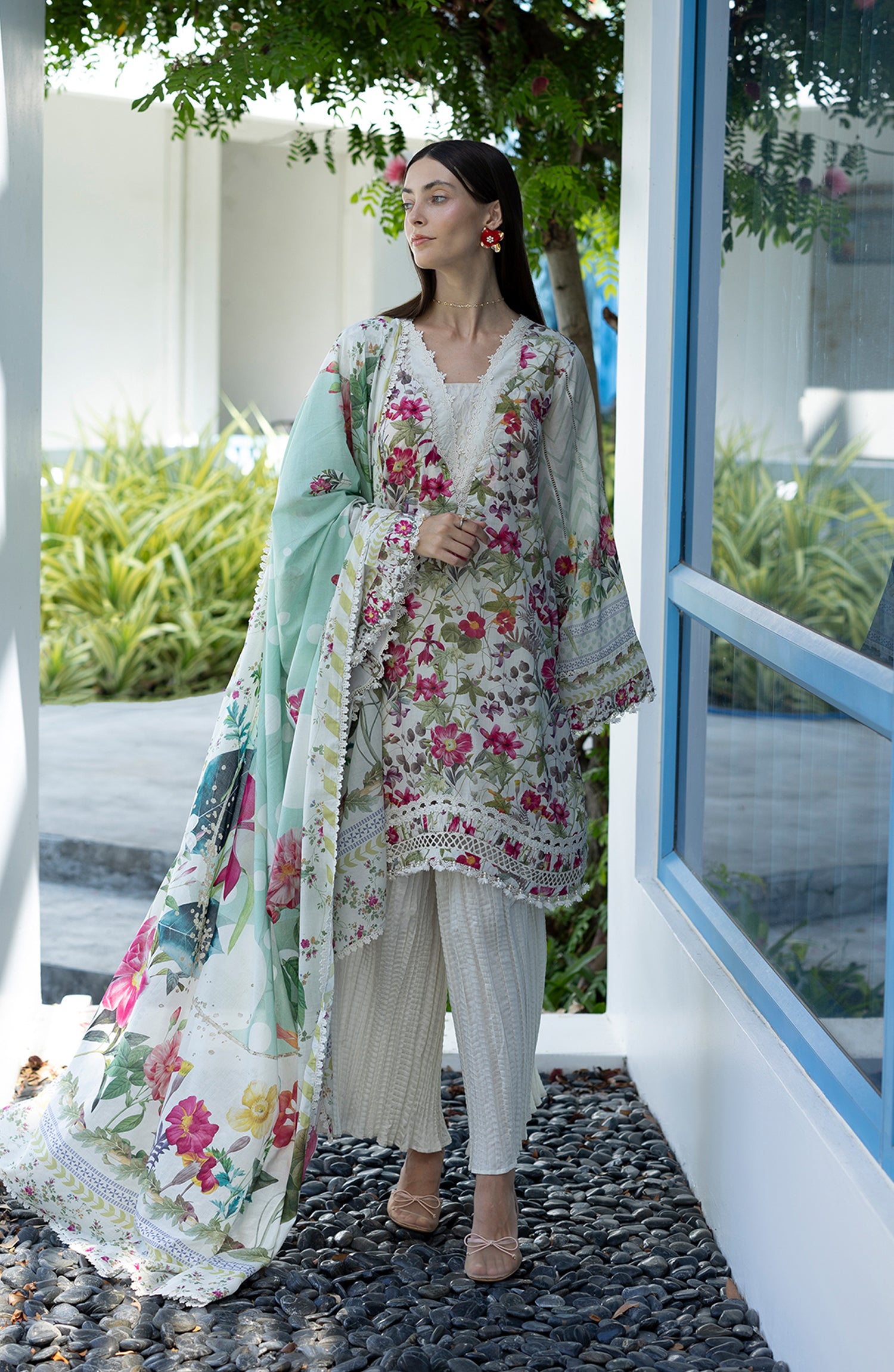 Santorini by Elaf Premium Digital Printed Lawn Unstitched 3 Piece Suit - EPN-9B CHANTILLY - EL26SNT - White - Summer Collection