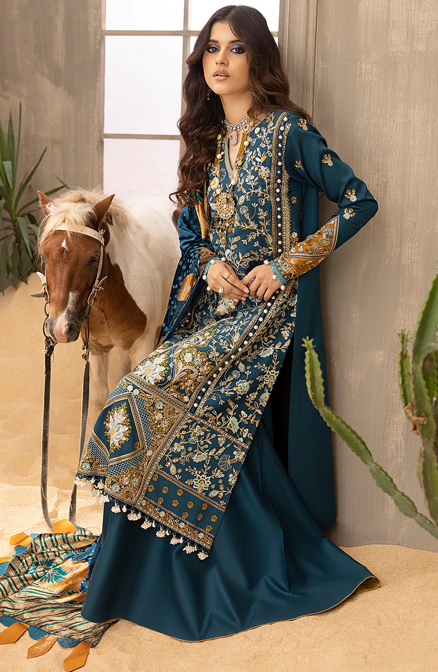 Kotrai Embroidered ShirtPlachi ShawlDyed Trouser