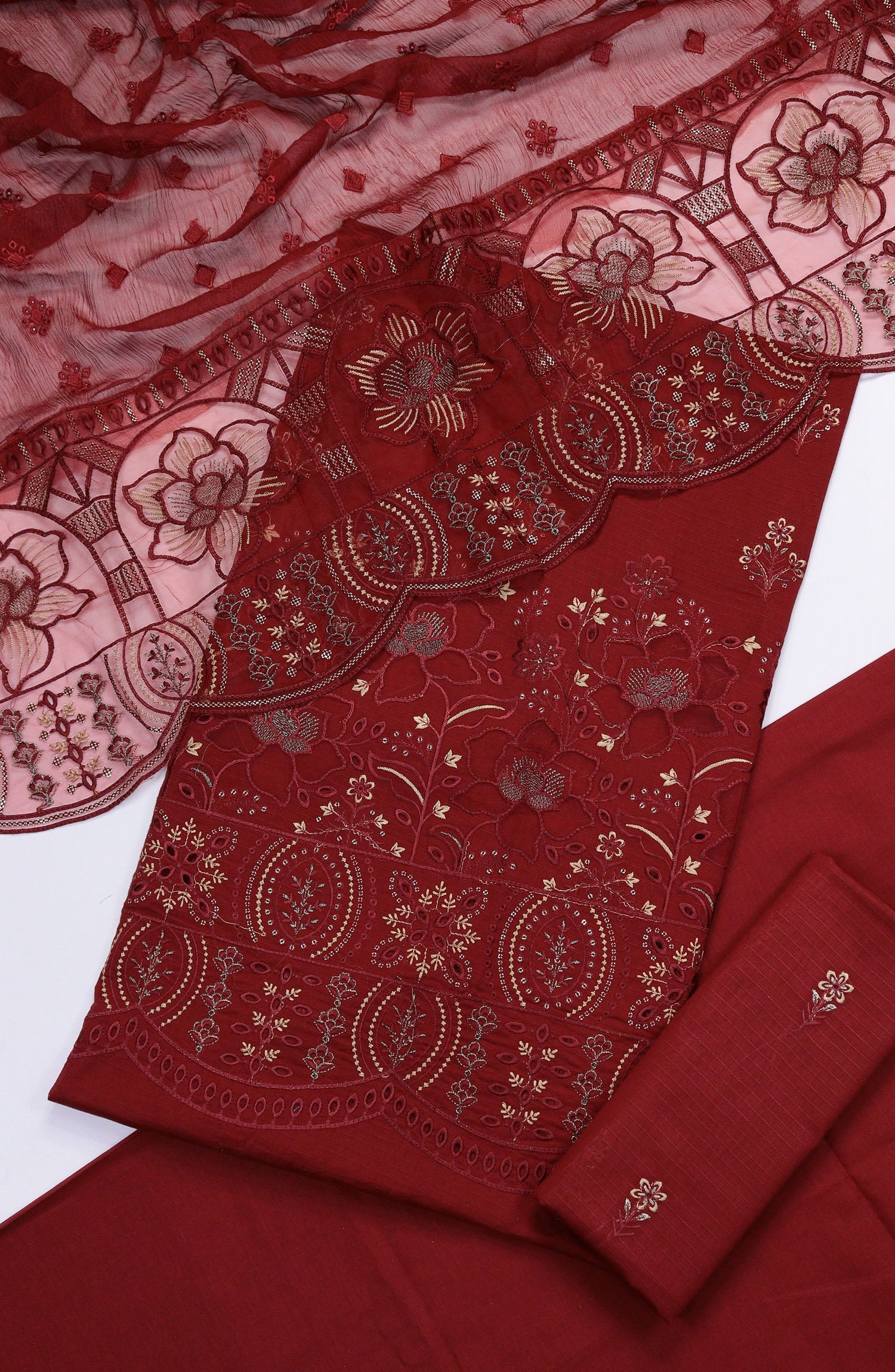 Chikankari Embroidered Bana Dora lawn fabric for Shirt