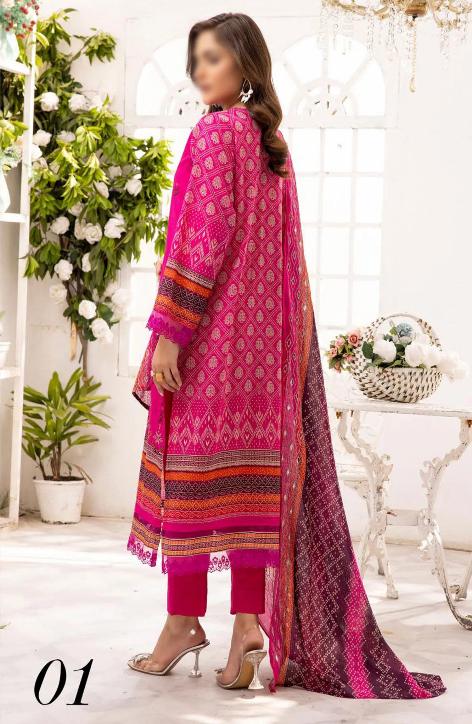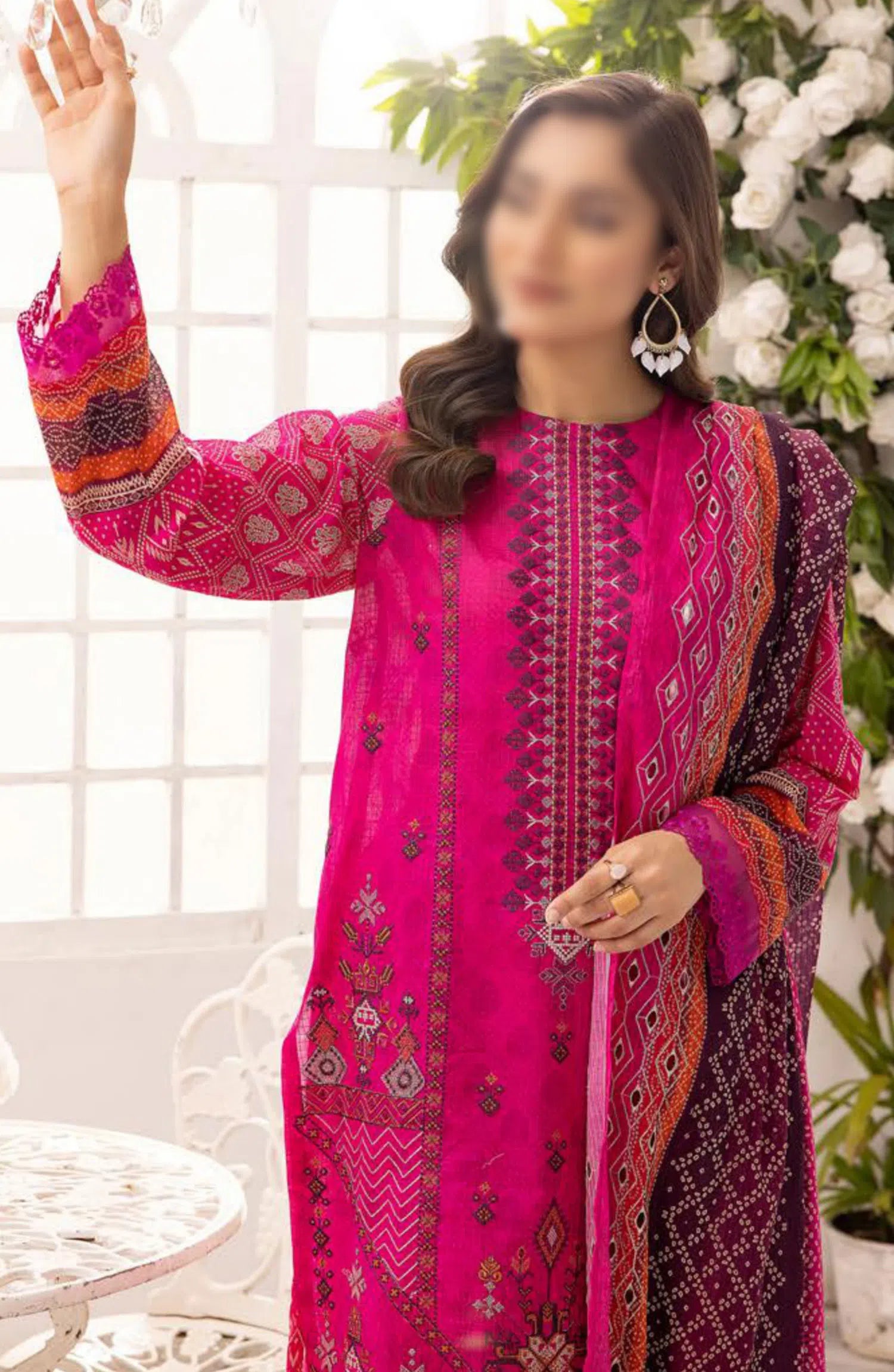 3 Piece Digital Embroidered Slub Lawn Suit with Voile Dupatta.