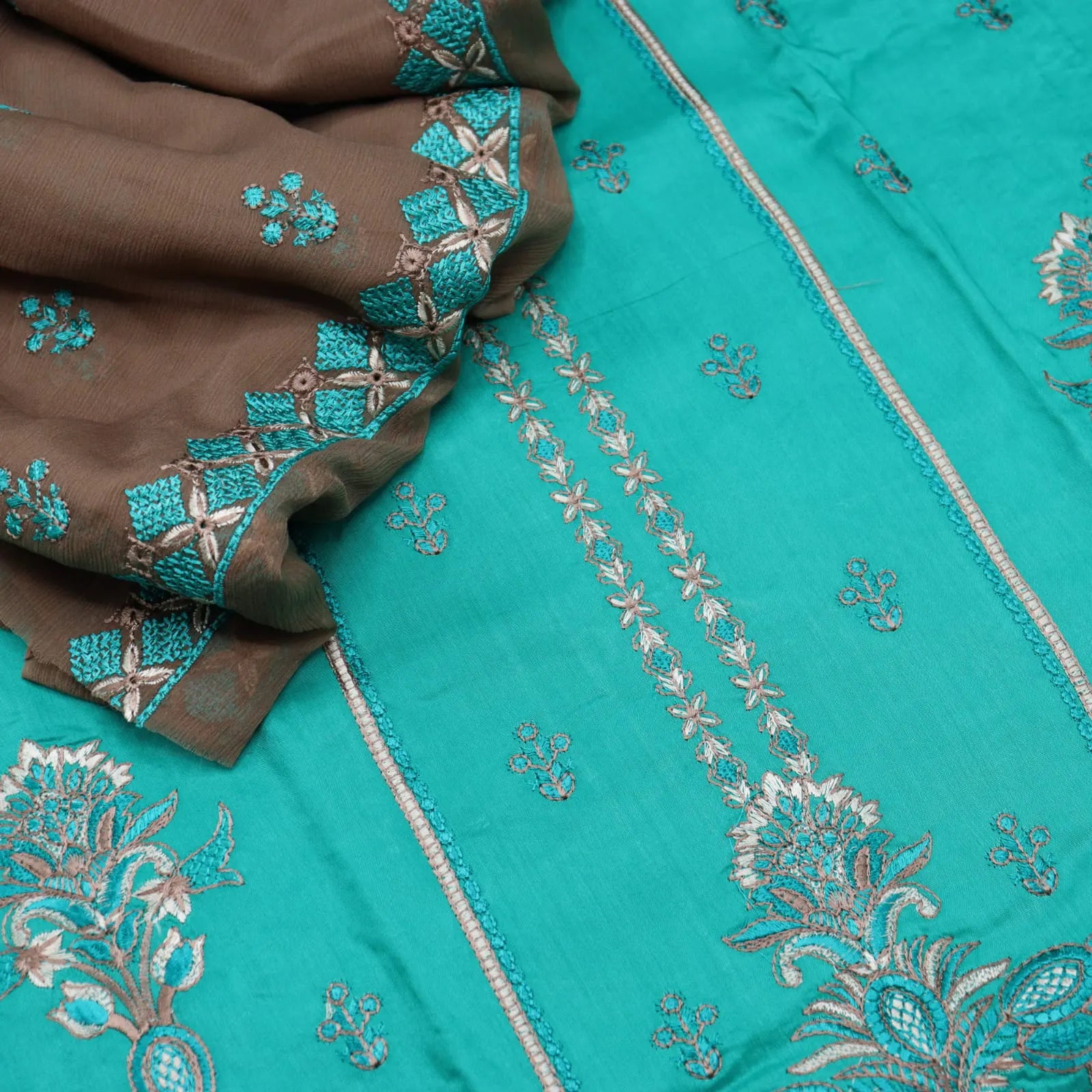 Queen Embroidered Sweet Peach Unstitched 3 Piece Suit - Design-06 - QU25SW - Teal - Winter Collection