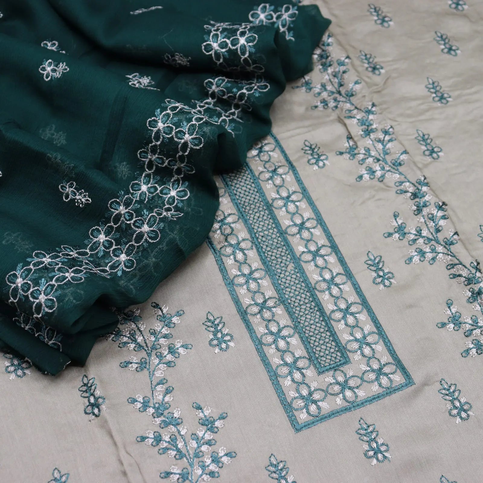 Queen Embroidered Sweet Peach Unstitched 3 Piece Suit - Design-06 - QU25SW - Teal - Winter Collection