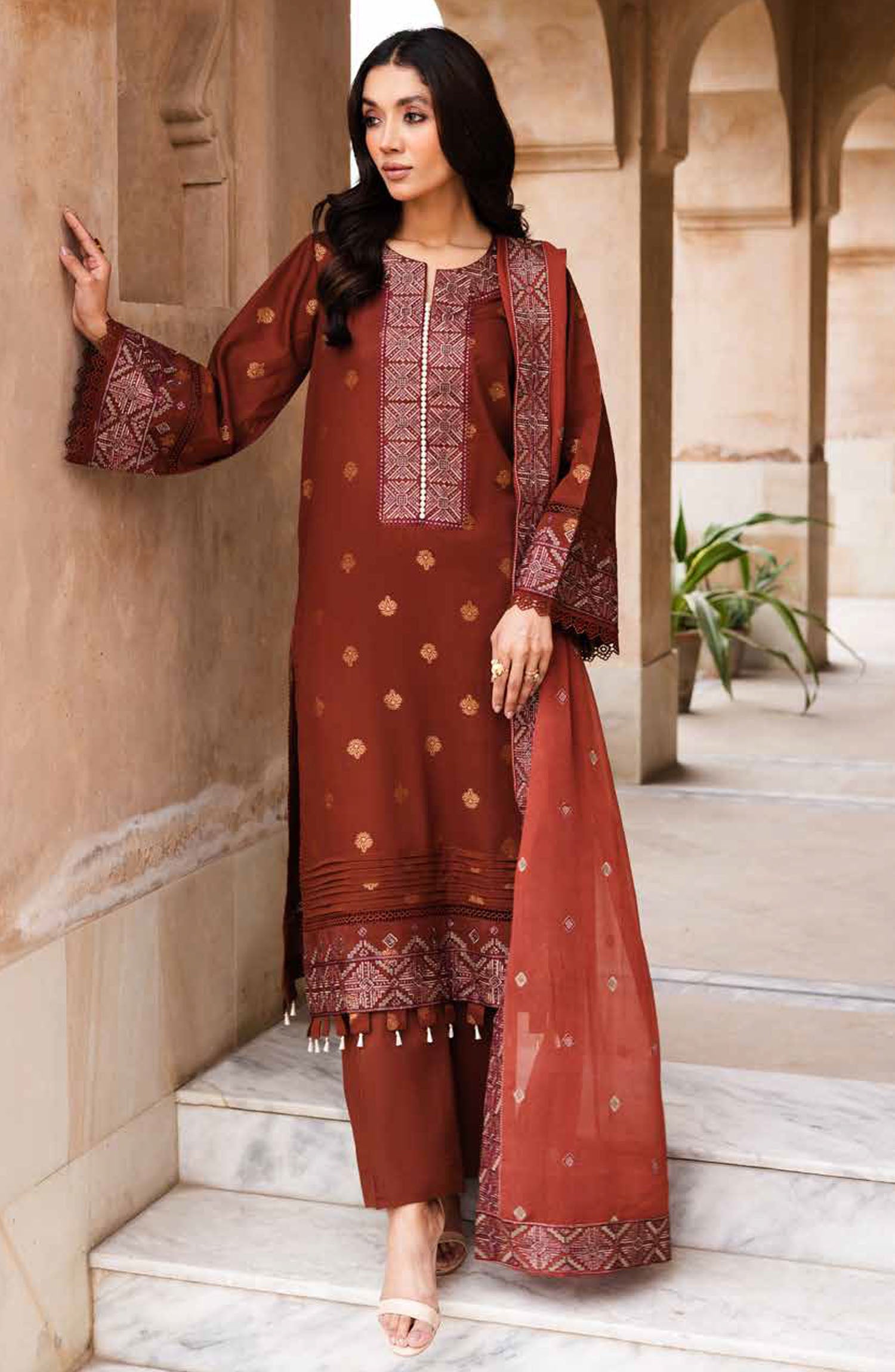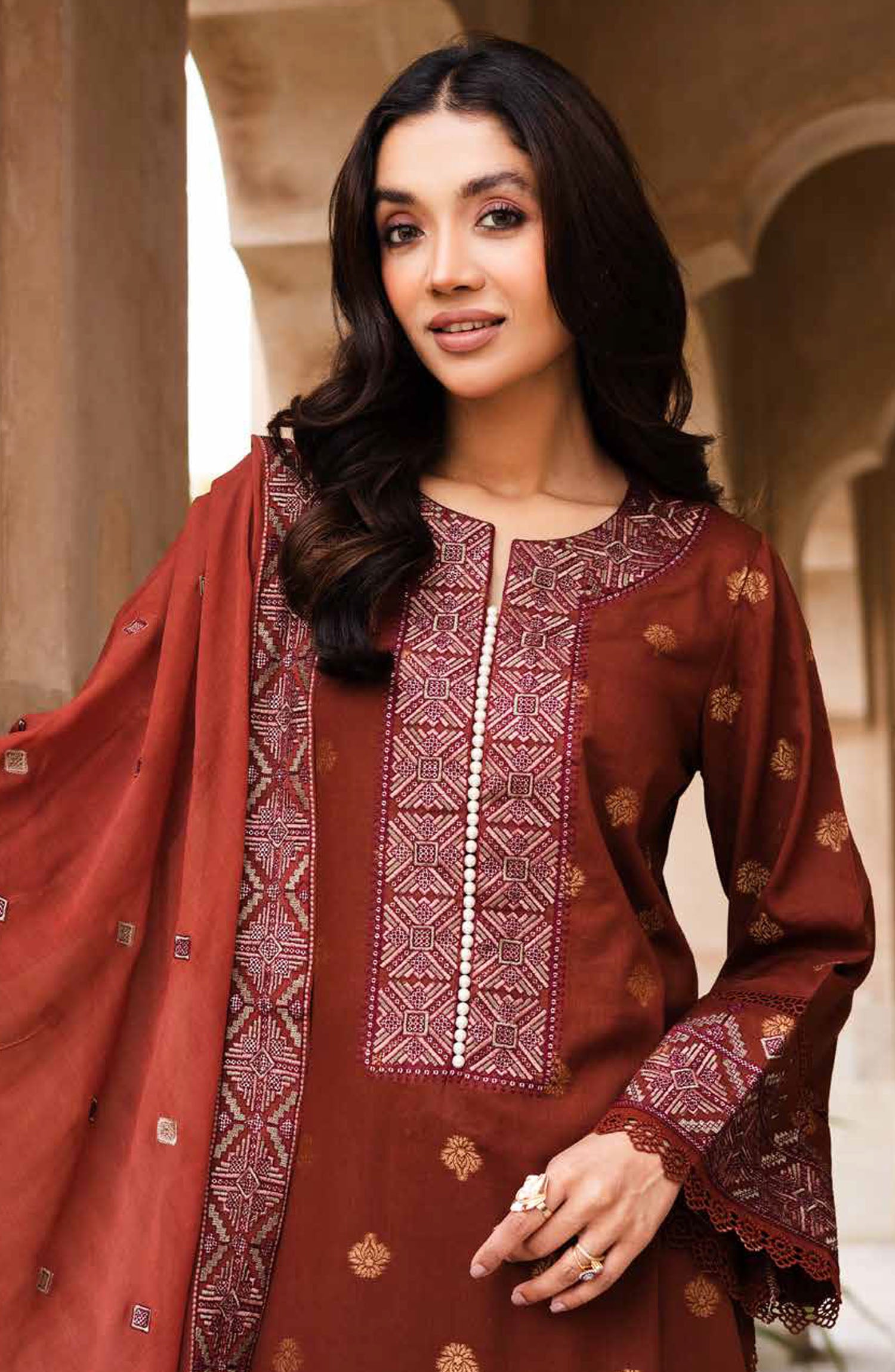 Modest Embroidered Khaddar Stitched 3 Piece Suit - 10000-Brn - MOD25WNT - Brown - Winter Collection