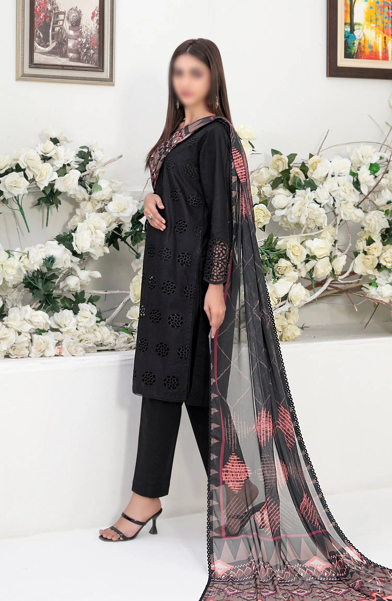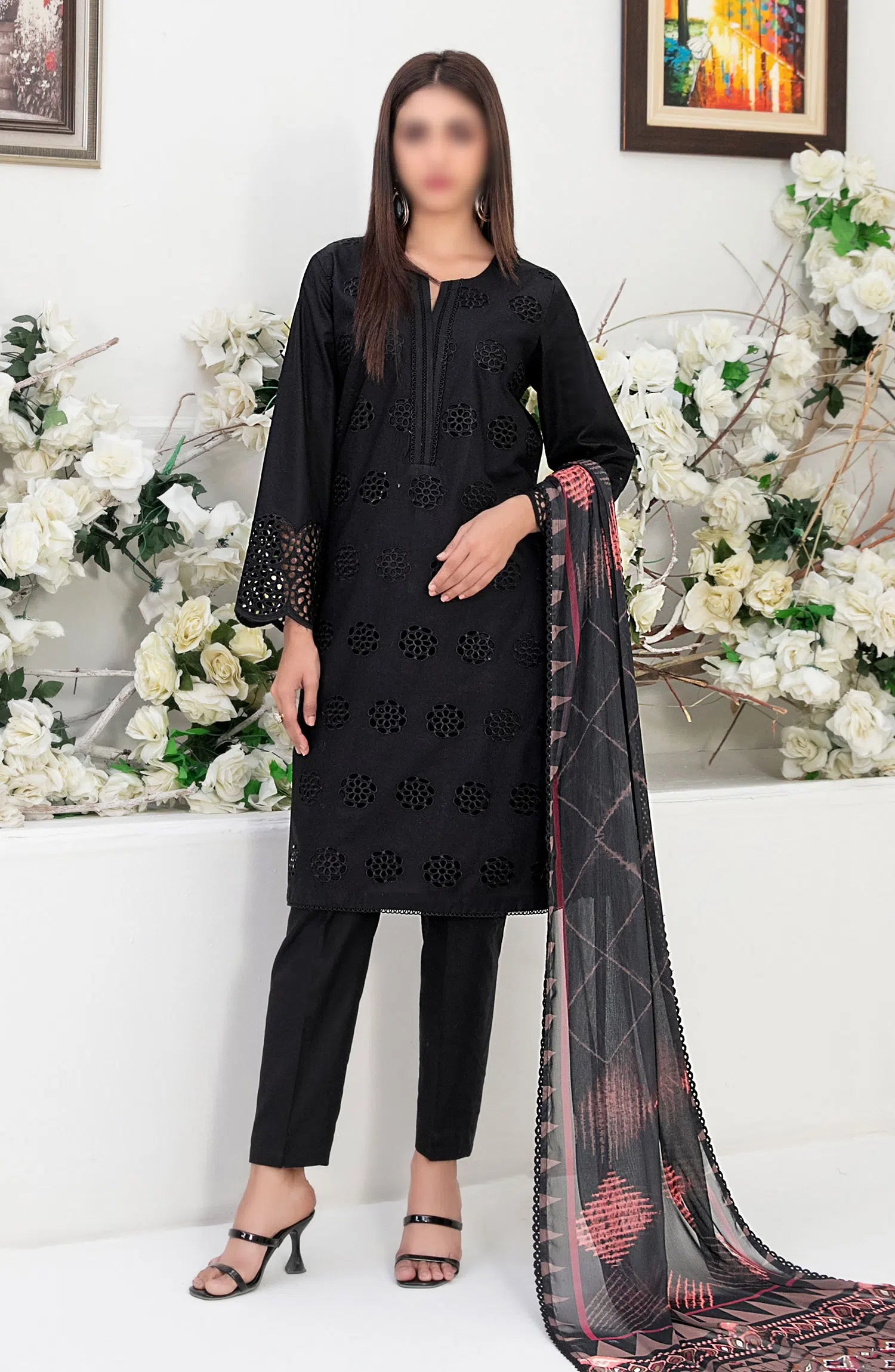 Sarv - Stitched Schiffli Embroidered Lawn Collection 2024 has been styled in the image for photography and illustrative purposes.