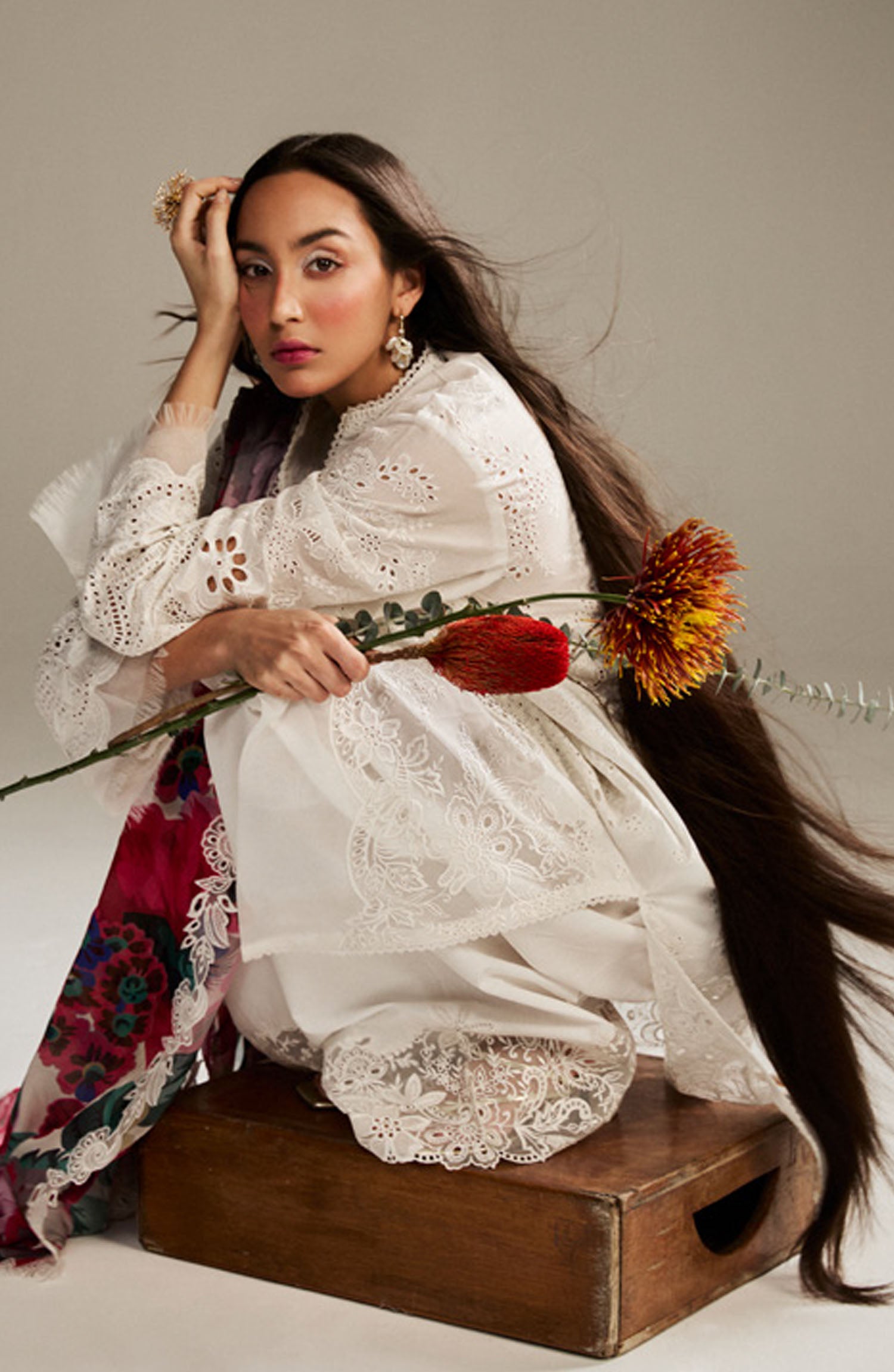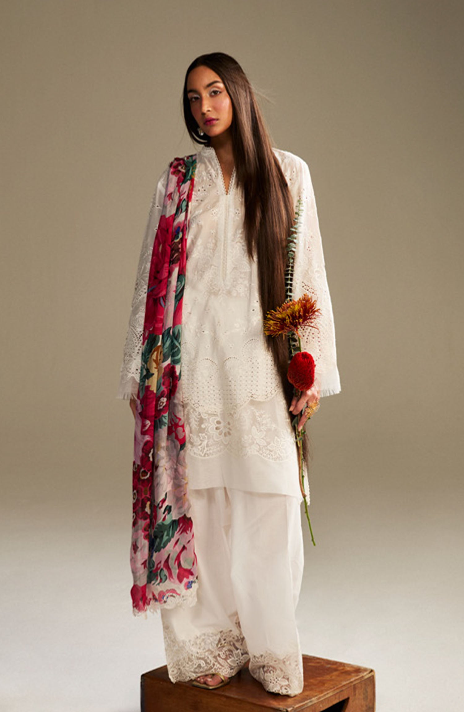 Satori by Zara Shahjahan Embroidered Lawn Unstitched 3 Piece Suit - D-01-A Kaori - ZS25SSL - White - Summer Collection