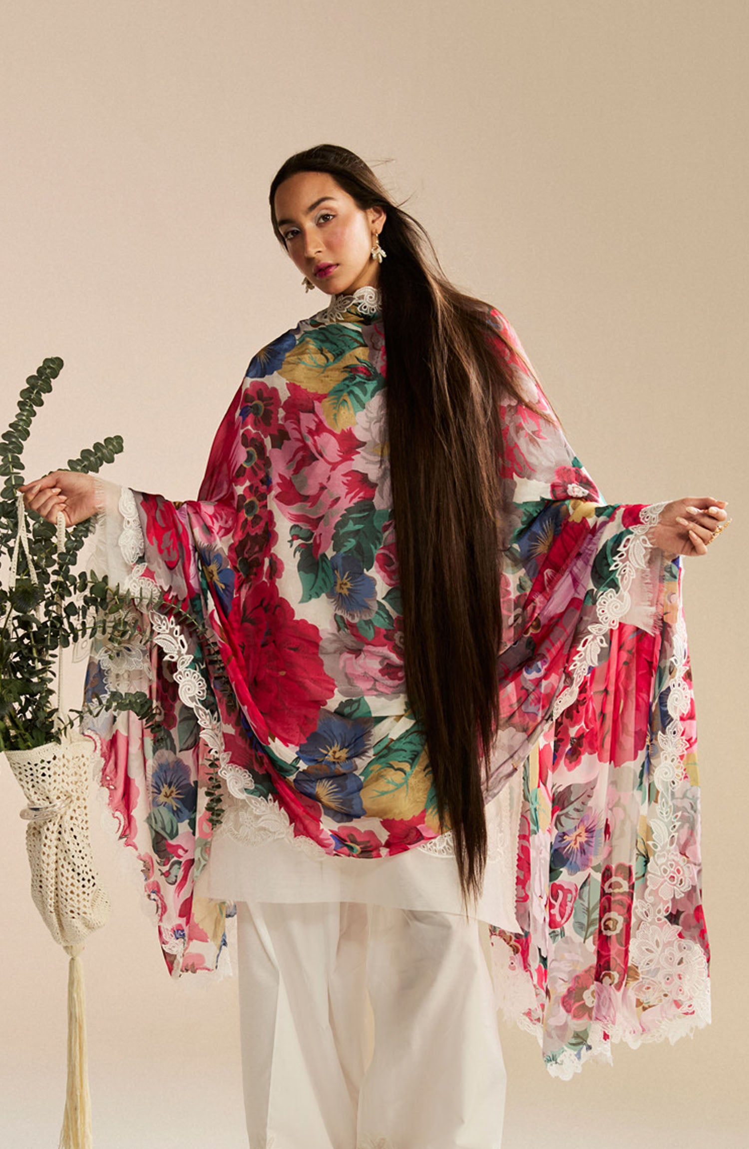 Home Satori by Zara Shahjahan Embroidered Lawn Unstitched 3 Piece Suit - D-01-A Kaori - ZS25SSL - White - Summer Collection