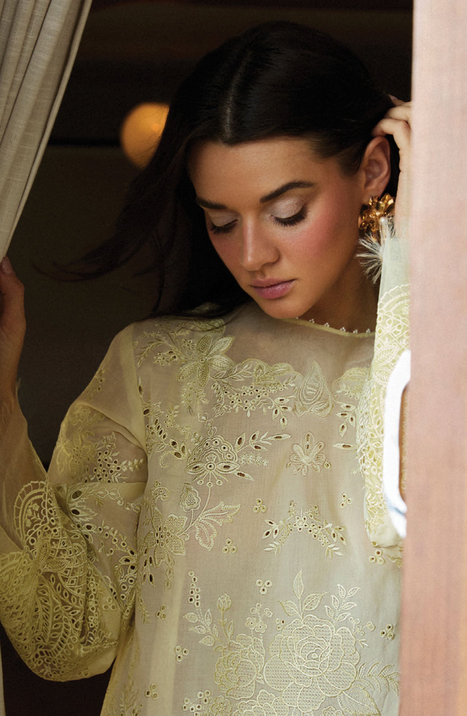Satori by Zara Shahjahan Embroidered Lawn Unstitched 3 Piece Suit - D-01-B Kaori - ZS25SSL - Yellow - Summer Collection