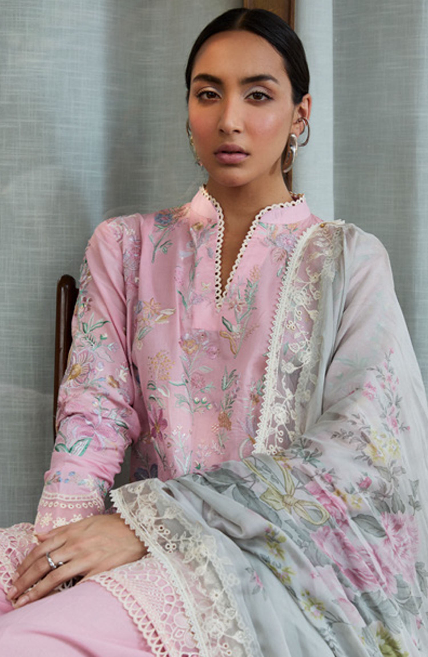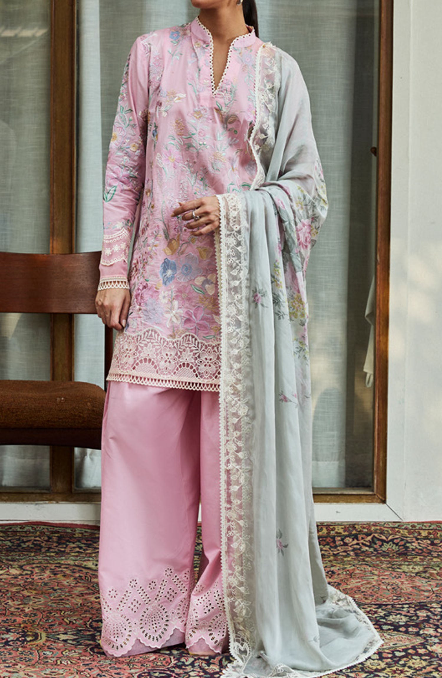 Satori by Zara Shahjahan Embroidered Lawn Unstitched 3 Piece Suit - D-02-A Nozami - ZS25SSL - Pink - Summer Collection