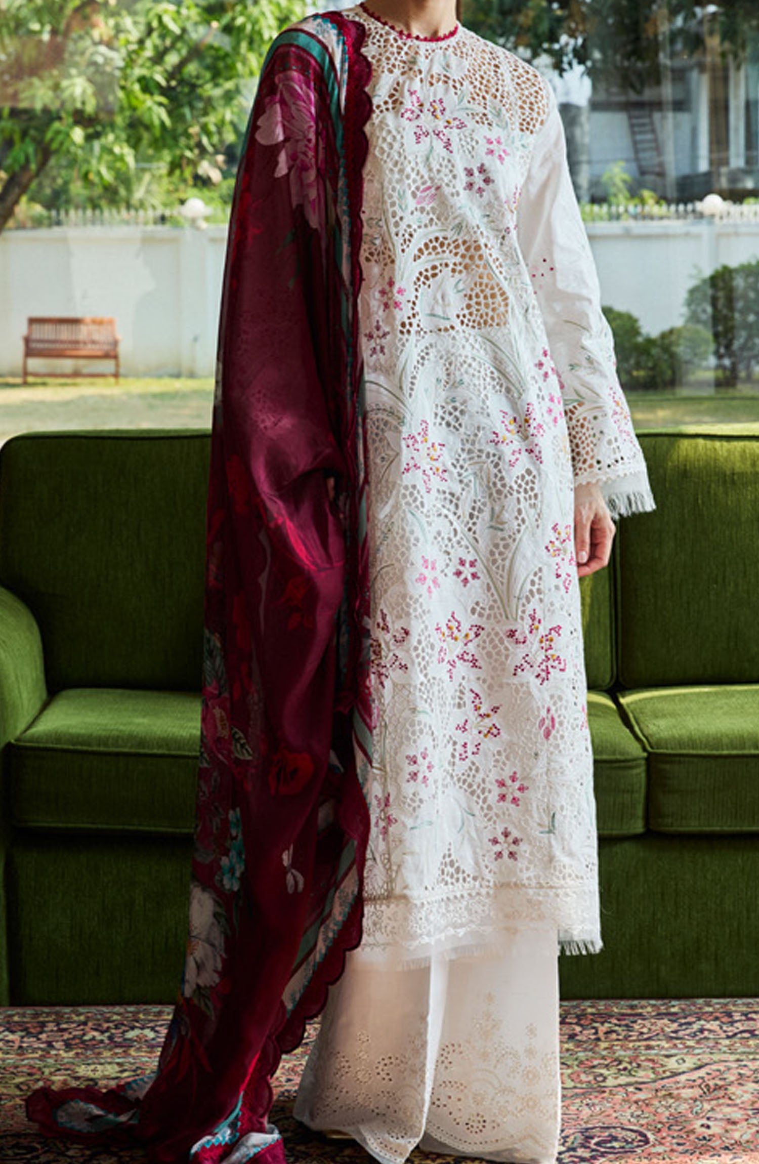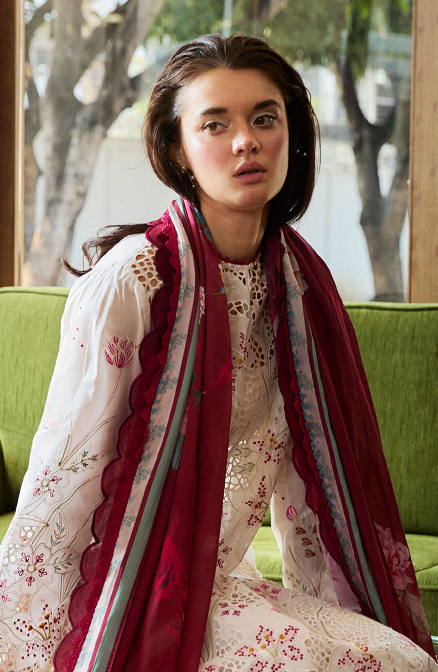 Satori by Zara Shahjahan Embroidered Lawn Unstitched 3 Piece Suit - D-03-A Umi - ZS25SSL - White - Summer Collection