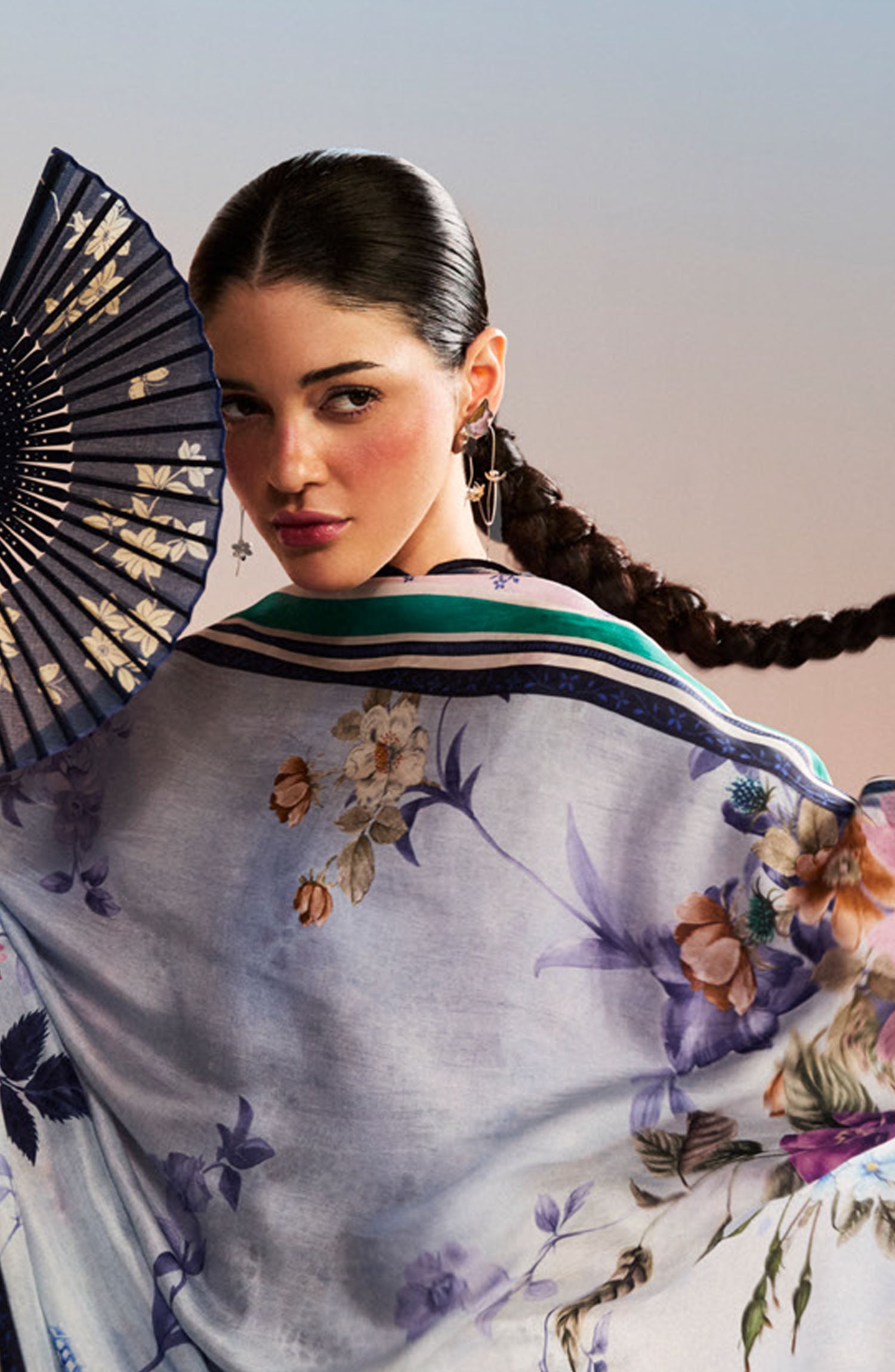 Home Satori by Zara Shahjahan Embroidered Lawn Unstitched 3 Piece Suit - D-03-B Umi - ZS25SSL - Purple - Summer Collection