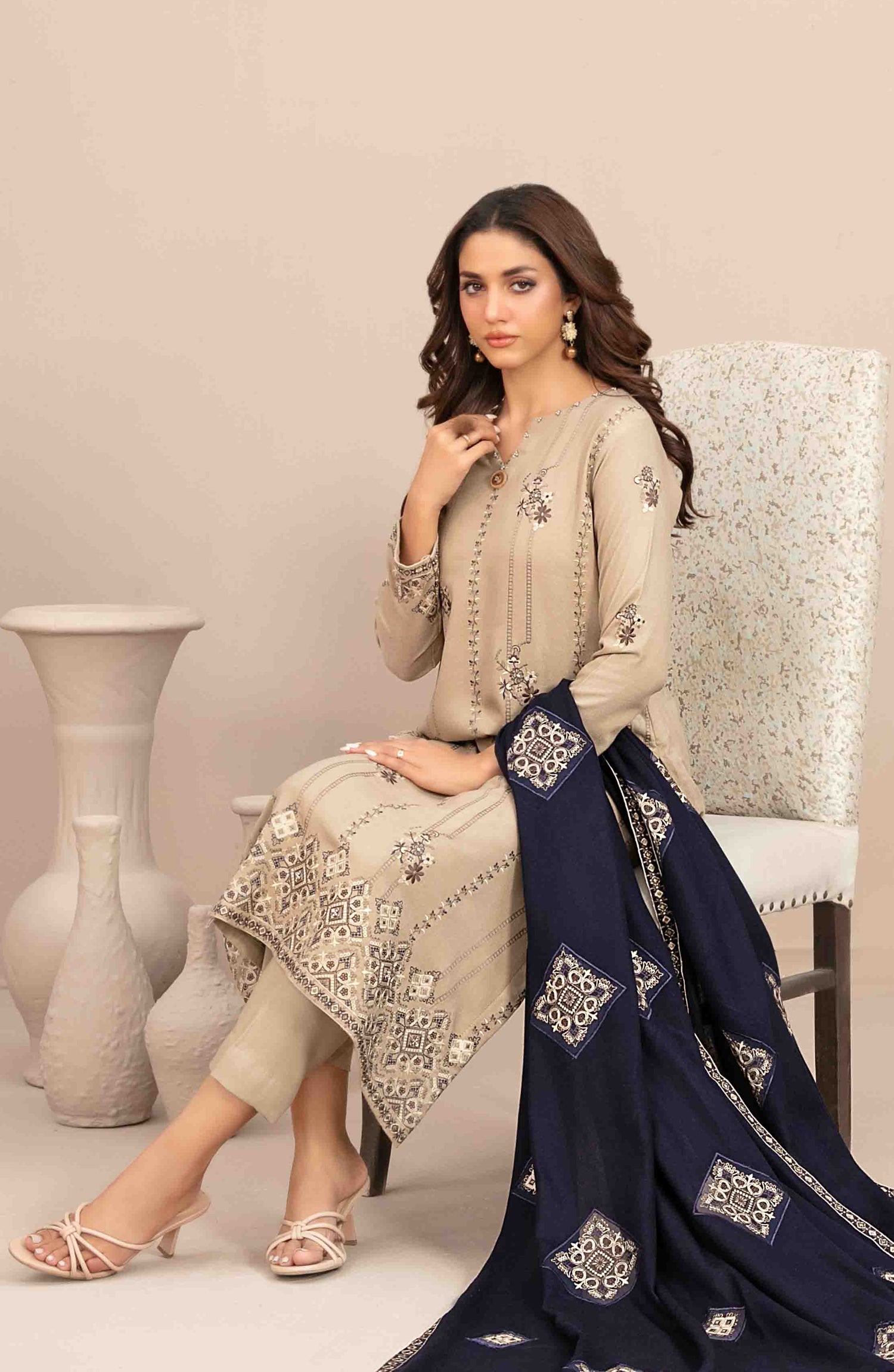 Fancy Embroidered Leather Peach Unstitched 3 Piece Suit