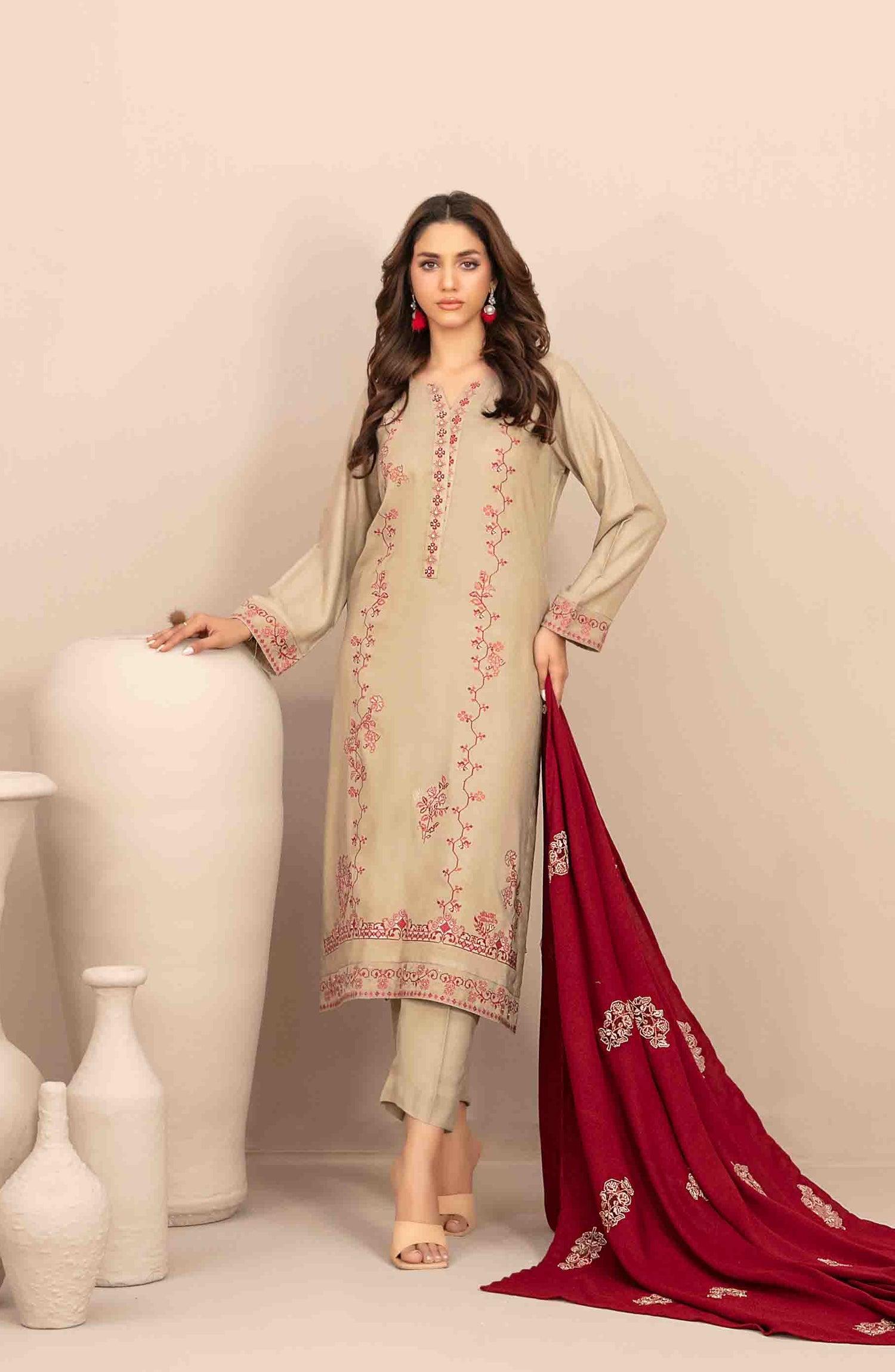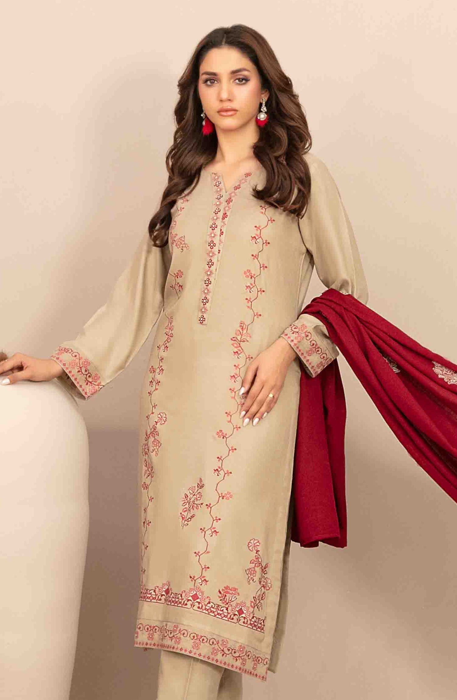 Fancy Embroidered Leather Peach Unstitched 3 Piece Suit