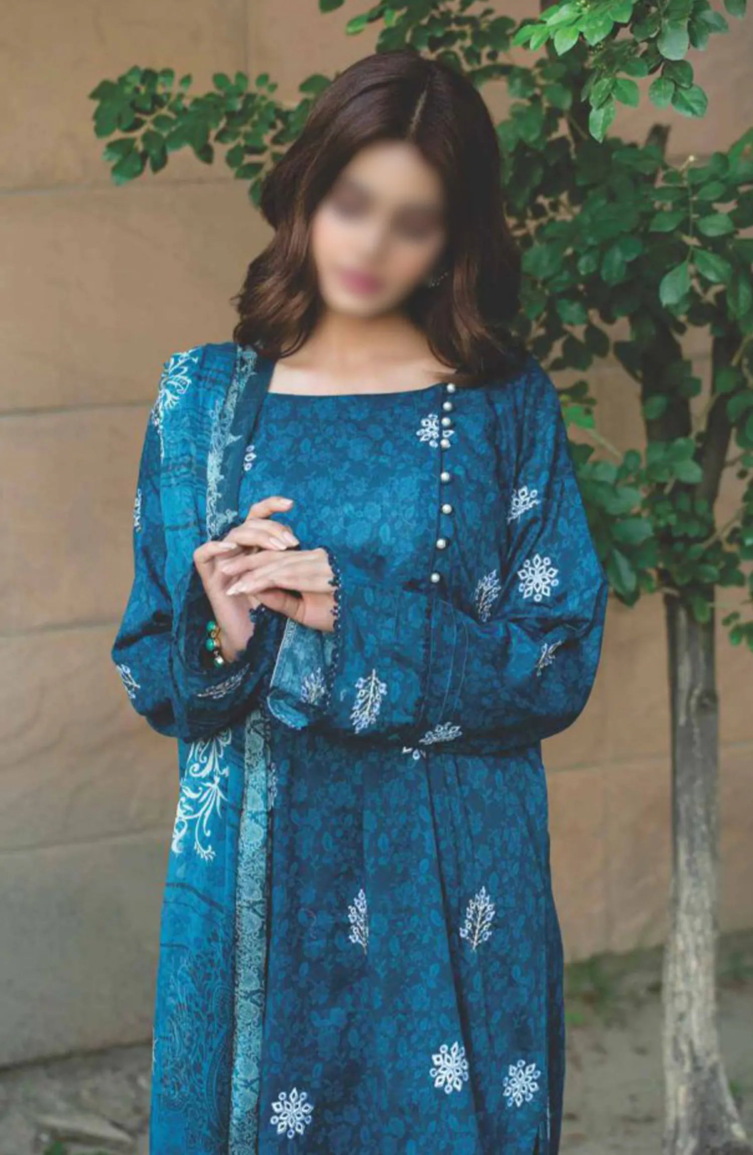 The standard style comes as a long-sleeved kameez with dupatta and trouser/shalwar.