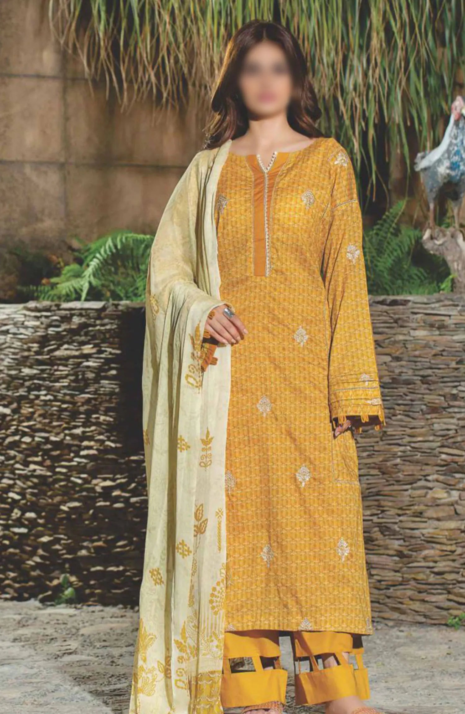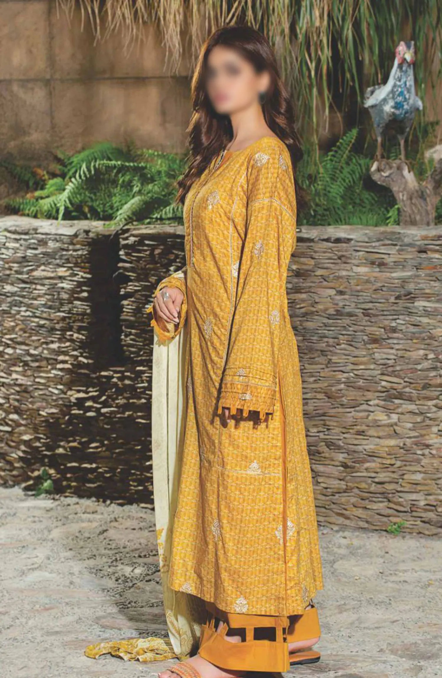The standard style comes as a long-sleeved kameez with dupatta and trouser/shalwar.